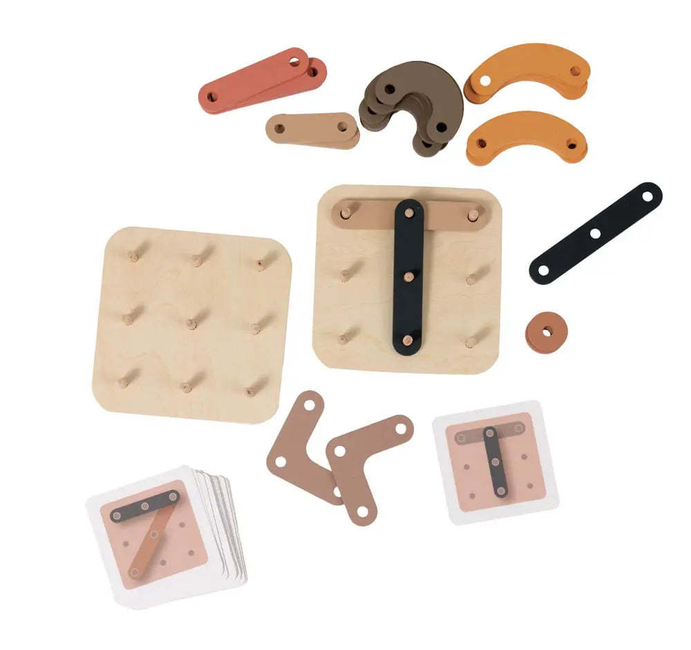 • Ce jeu de construction astucieux développe les capacités de résolution de problèmes tout en renforçant la confiance en soi. Chaque pièce en bois lisse est soigneusement conçue pour s'emboîter parfaitement sur le plateau de base robuste.