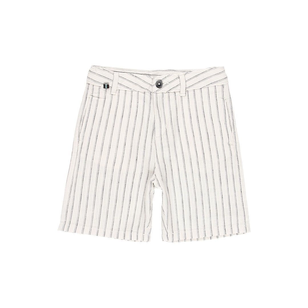 • Bermuda blanc rayé à taille ajustable avec bouton et fermeture éclair.