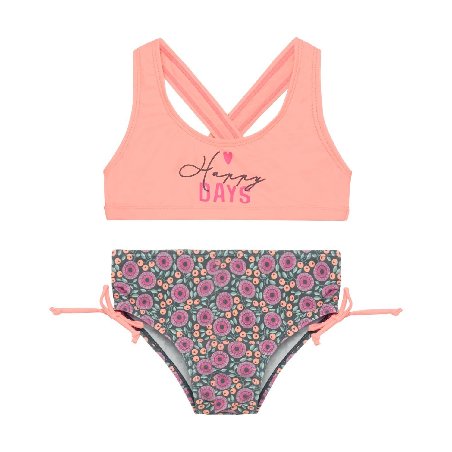 • Bikini 2 pièces imprimé de couleur gris et pêche.