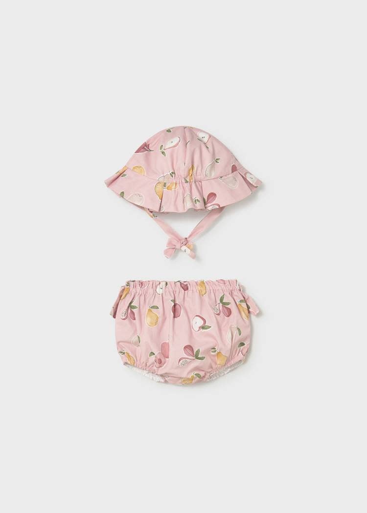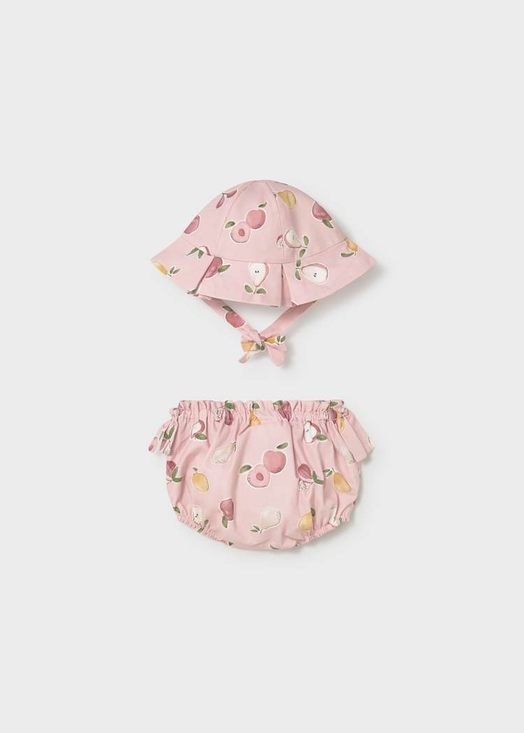 • Bloomer imprimé de couleur rose avec chapeau agencé.