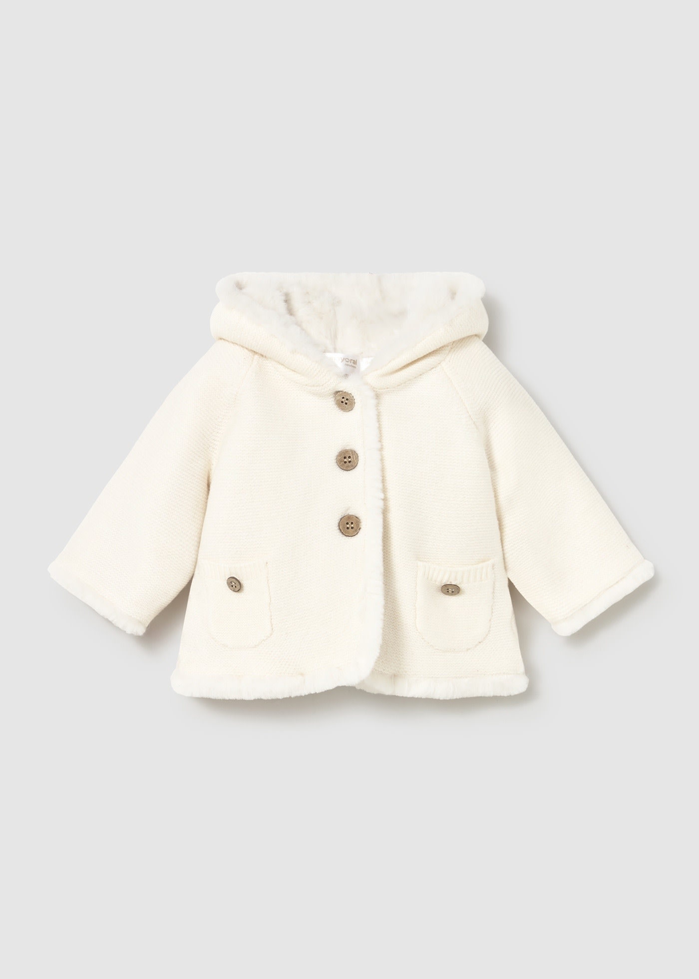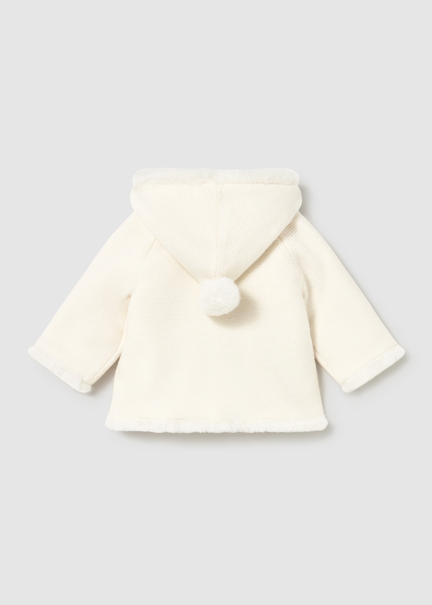 • Cardigan doublé en tricot de couleur ivoire avec capuche.