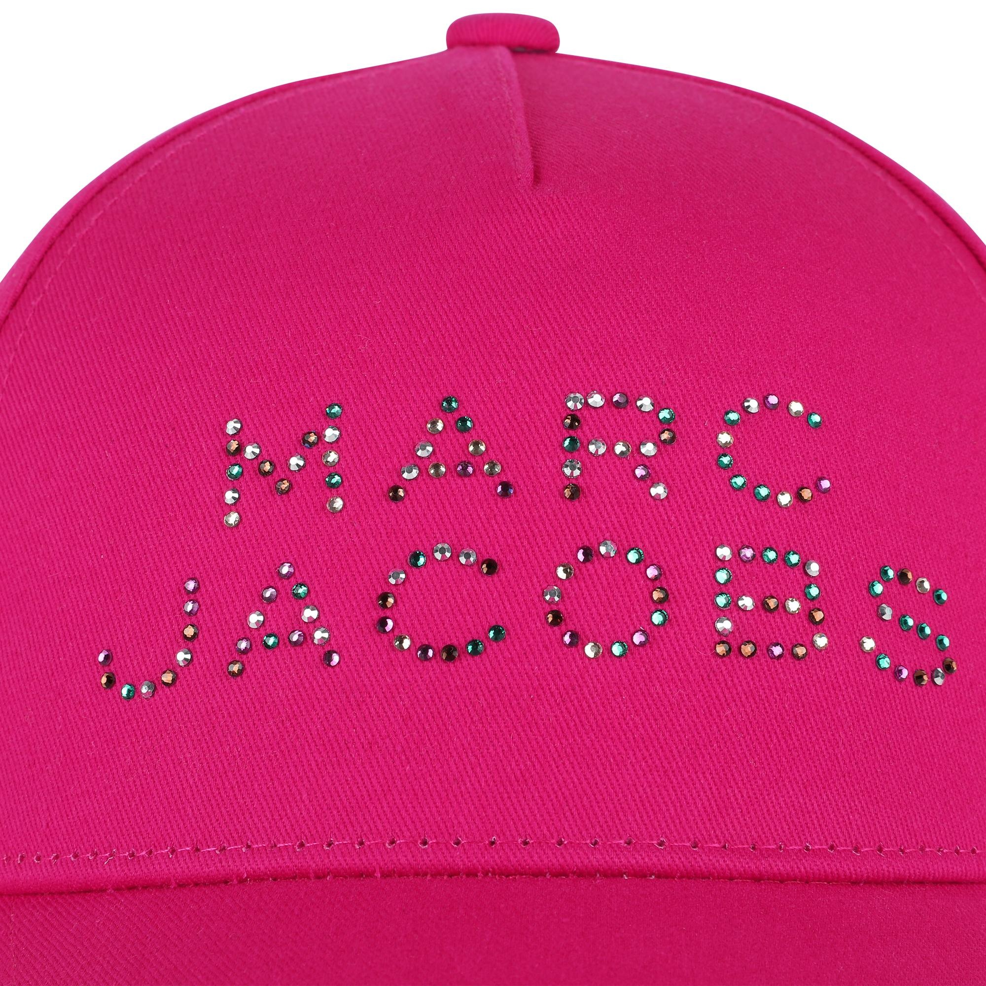 • Casquette fuchsia avec logo en brillants colorés à l'avant.