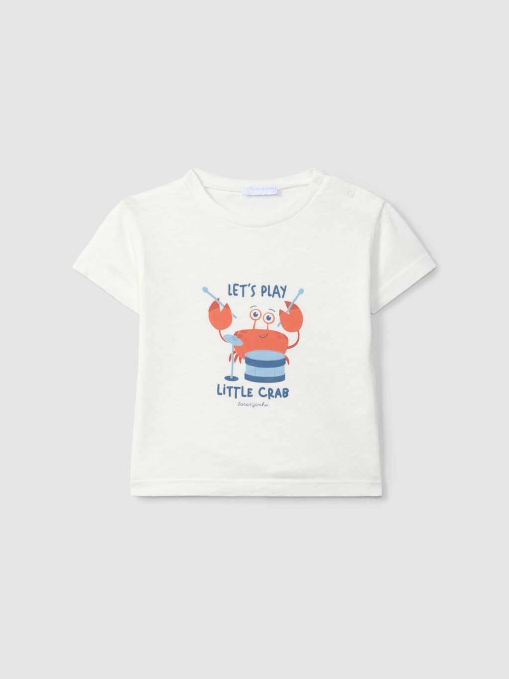 • T-shirt imprimé de couleur banc cassé avec boutons pressions à l'épaule.