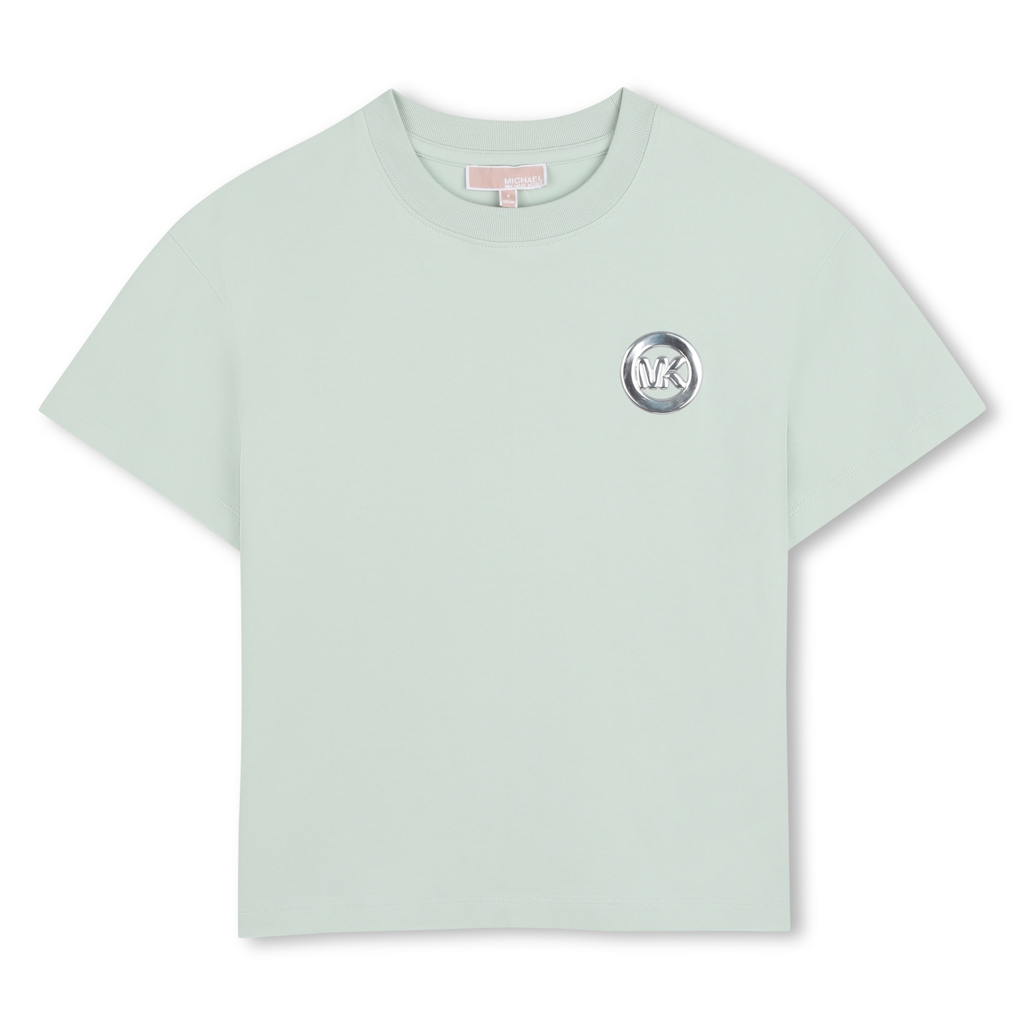 • T-Shirt vert menthe avec logo en relief argenté à l'avant.