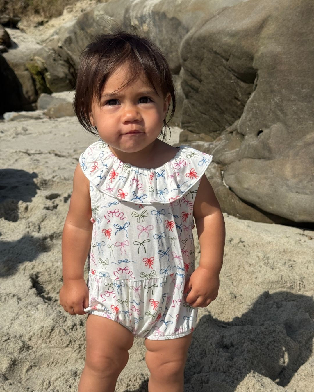 • Combi-court blanc imprimé avec boutons pressions à l'entrejambe.