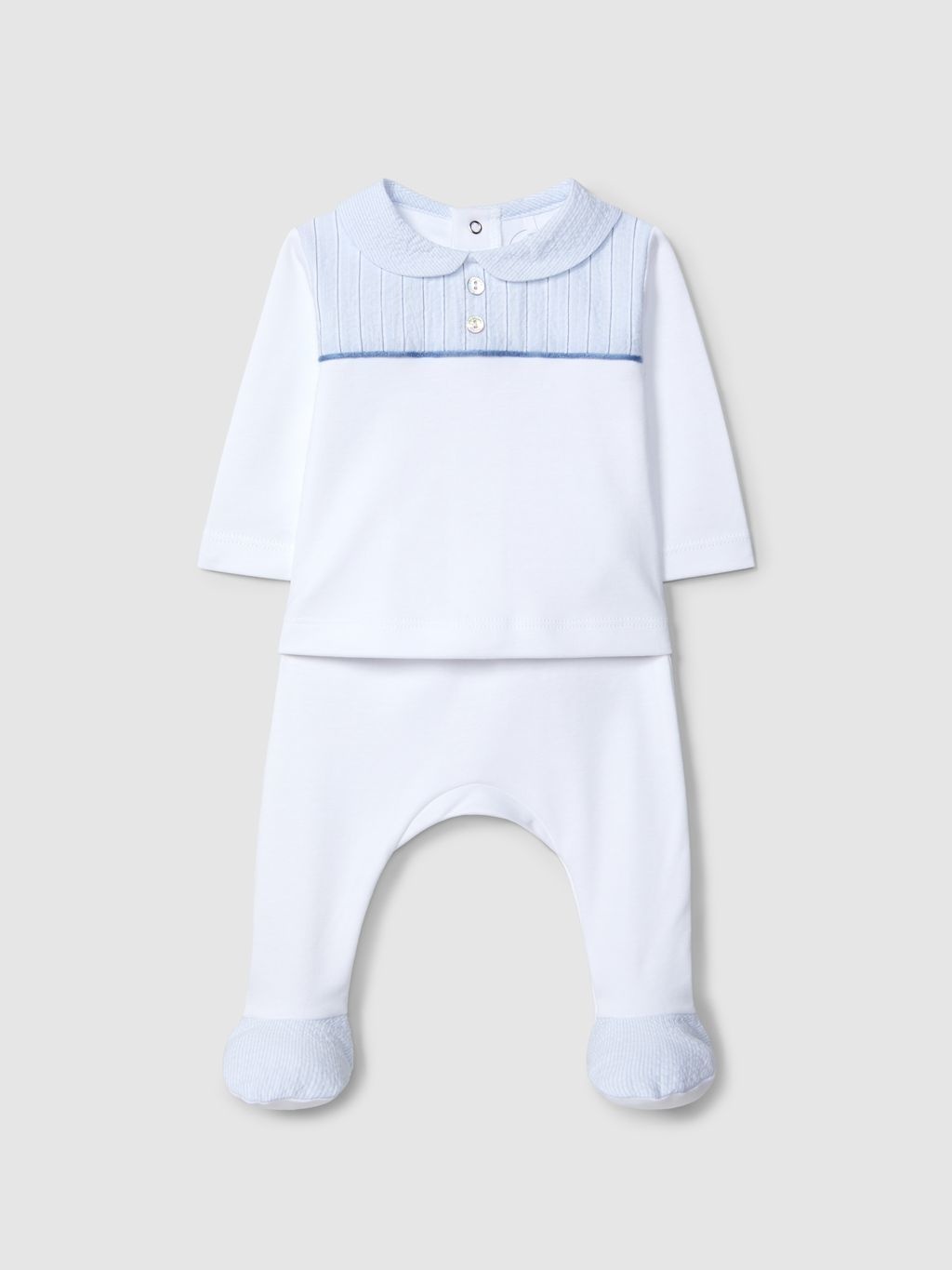 • Ensemble blanc 2 pièces incluant un haut manches longues ainsi qu'un pantalon à pieds.