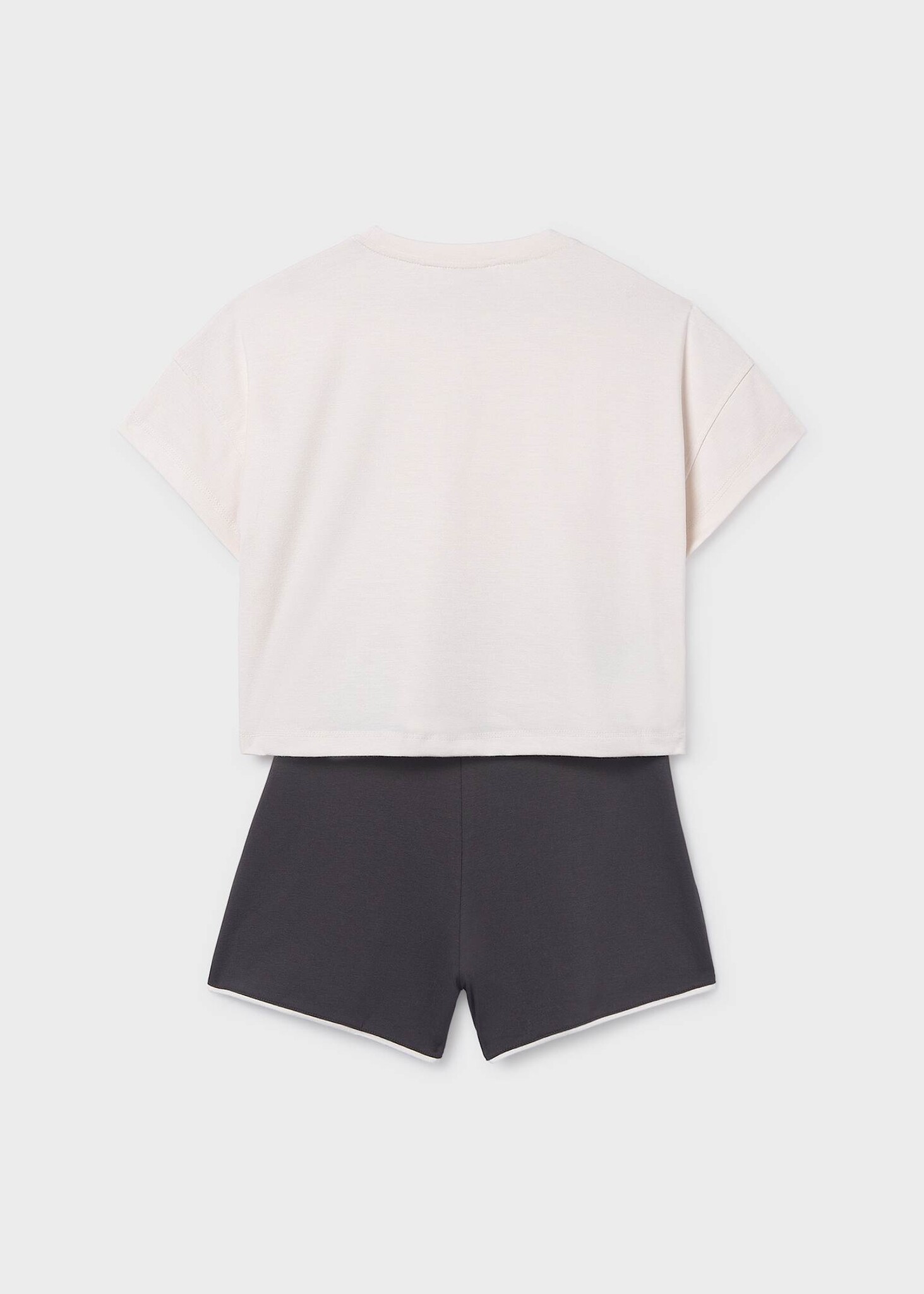 • Ensemble 2 pièces incluant un haut manches courtes de couleur crème ainsi qu'un short de couleur anthracite.