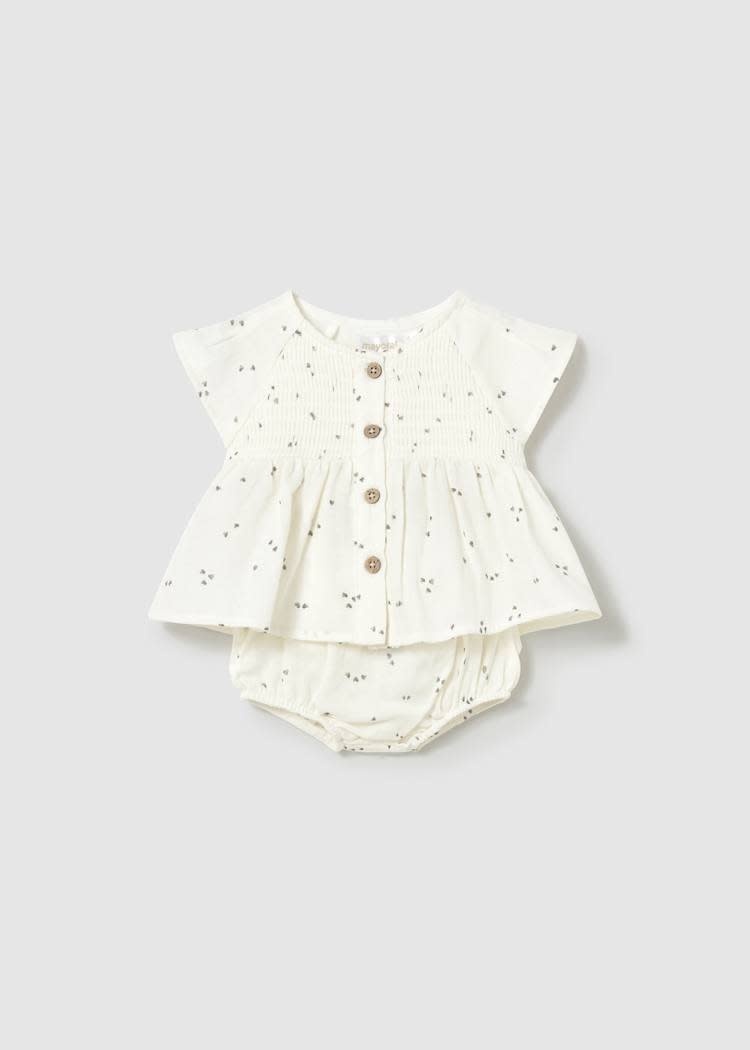 • Ensemble 2 pièces imprimé de couleur crème incluant une blouse ainsi qu'un bloomer.