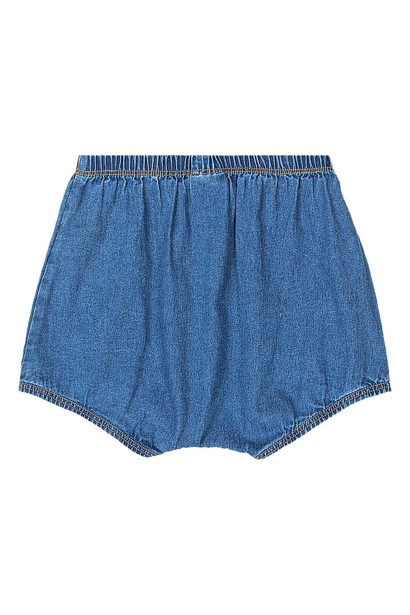 • Ensemble 2 pièces incluant un haut blanc manches courtes ainsi qu'un short bleu en denim.