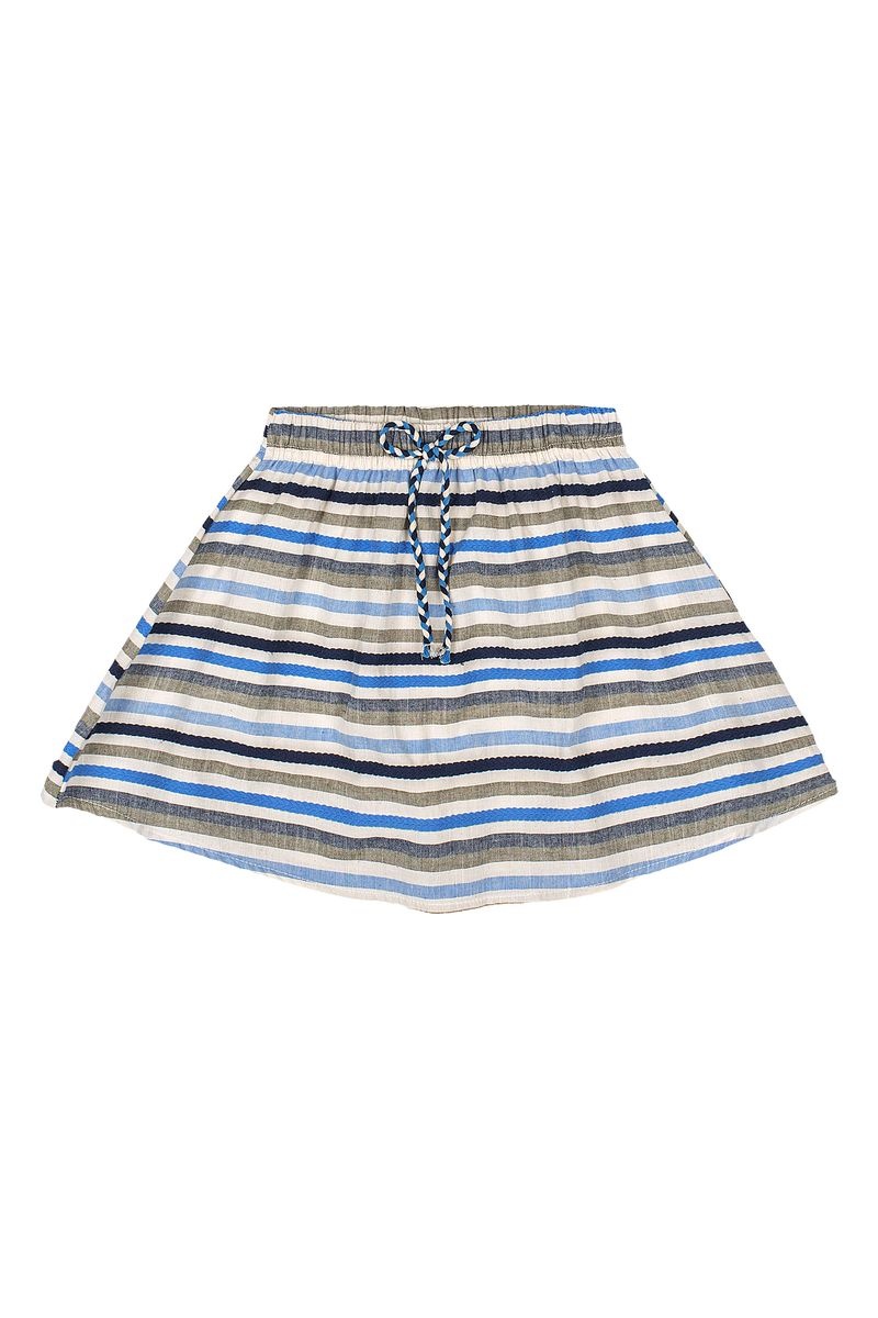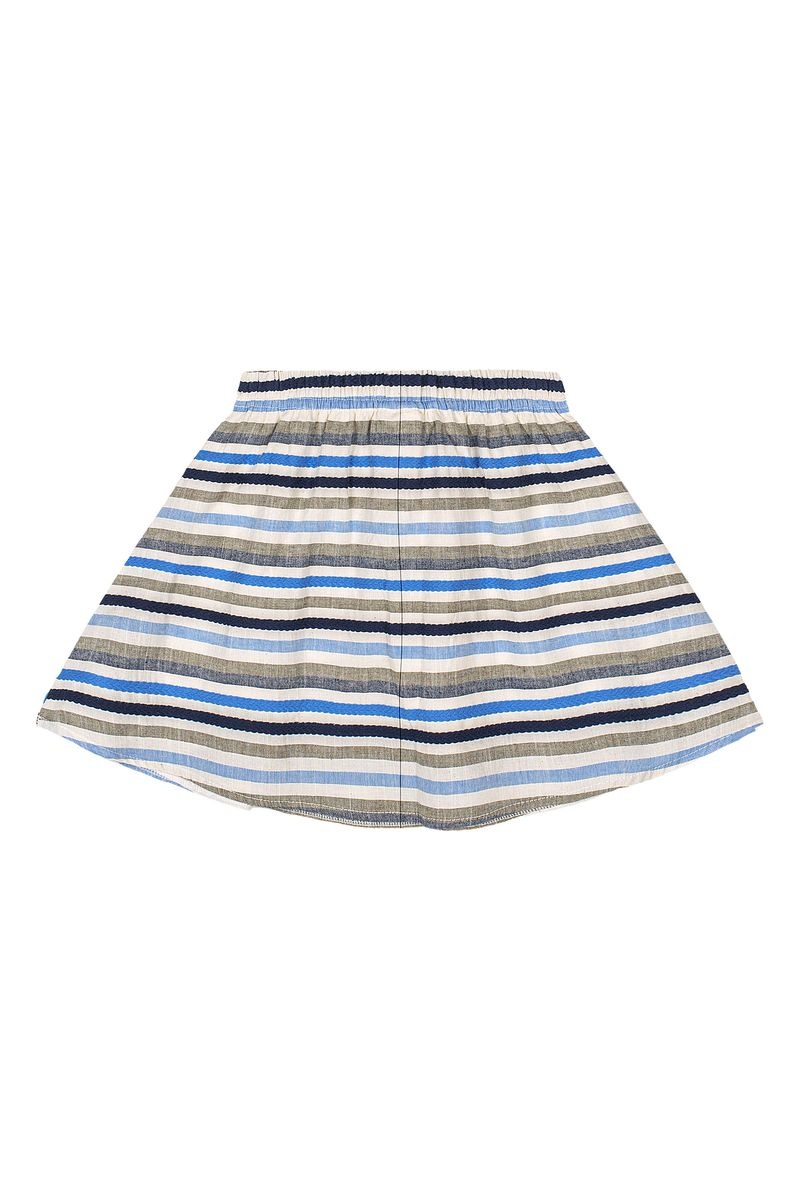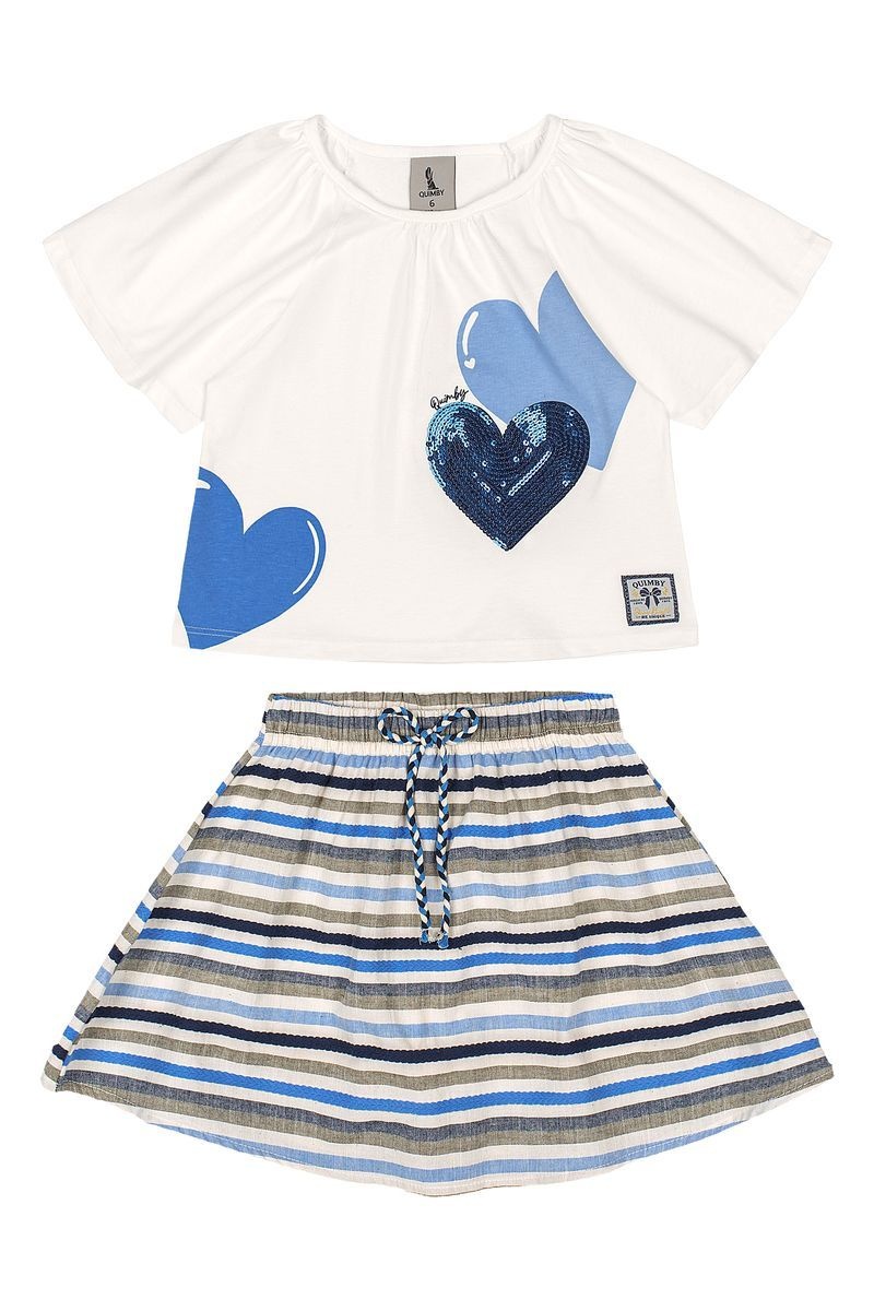 • Ensemble 2 pièces incluant un haut blanc manches courtes ainsi qu'une jupe-shorts rayée.