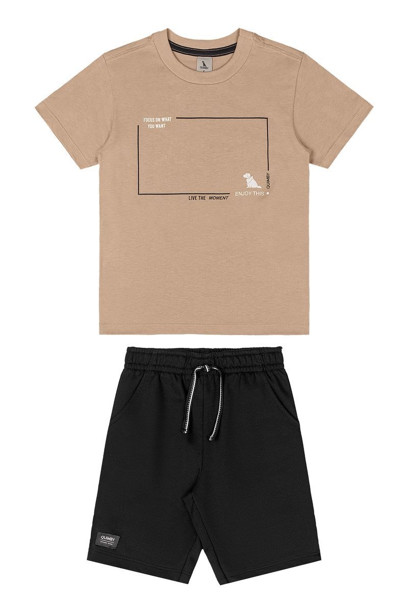 • Ensemble 2 pièces incluant un t_shirt brun imprimé ainsi qu'un bermuda noir à taille élastique.