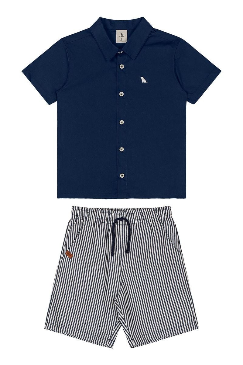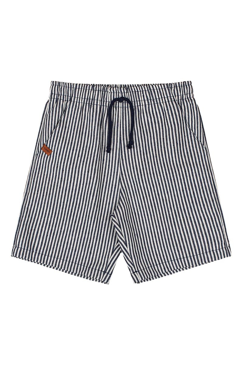 • Ensemble 2 pièces incluant un chemisier marine manches courtes ainsiqu'un bermuda à fines rayures taille élastique.