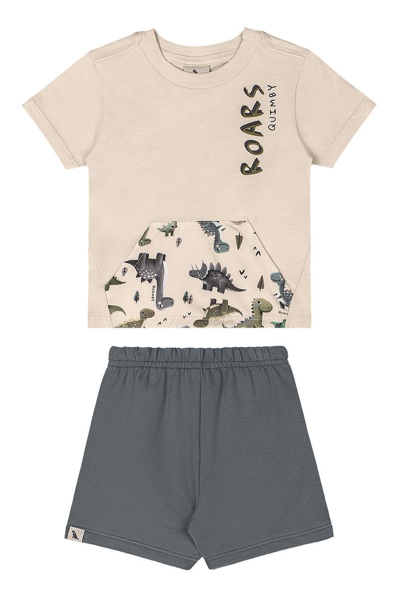 • Ensemble 2 pièces incluant un t-shirt imprimé de couleur crème ainsi qu'un shorts gris à taille élastique.