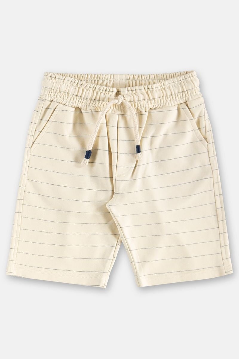 • Ensemble 2 pièces incluant un t-shirt marine et un short de couleur crème,e.