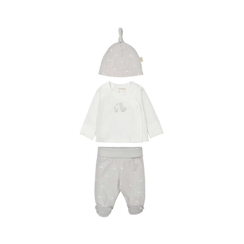 • Ensemble 3 pièces en coton incluant un haut manches longues, un bas à pattes et un bonnet.