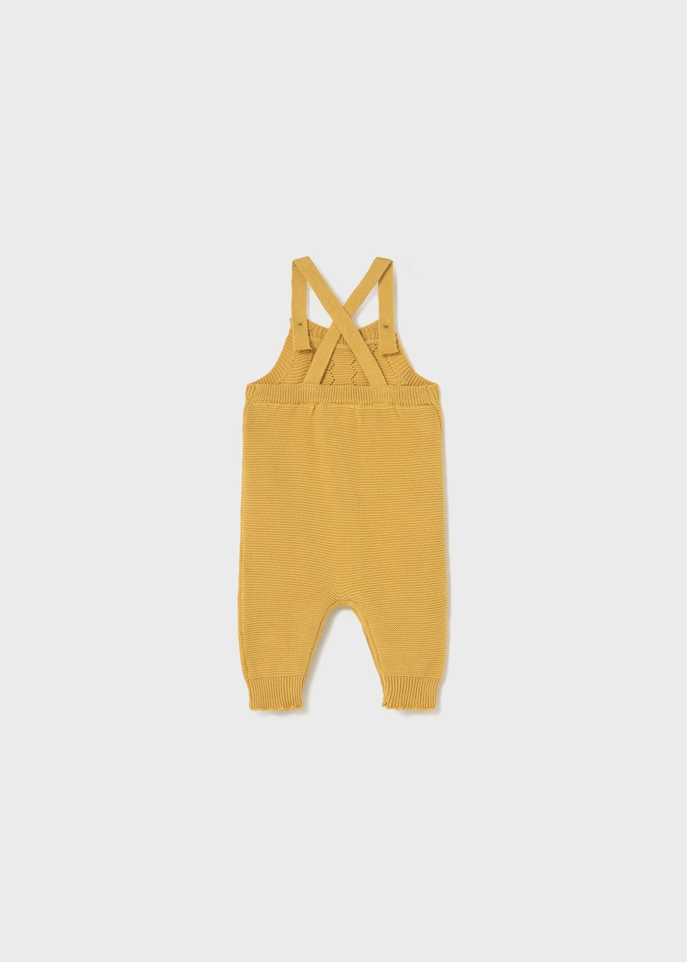• Ensemble 3 pièces en tricot incluant un haut manches longues ivoire, un cardigan en tricot ainsi qu'une salopette en tricot avec boutons pressions à l'entrejambe.