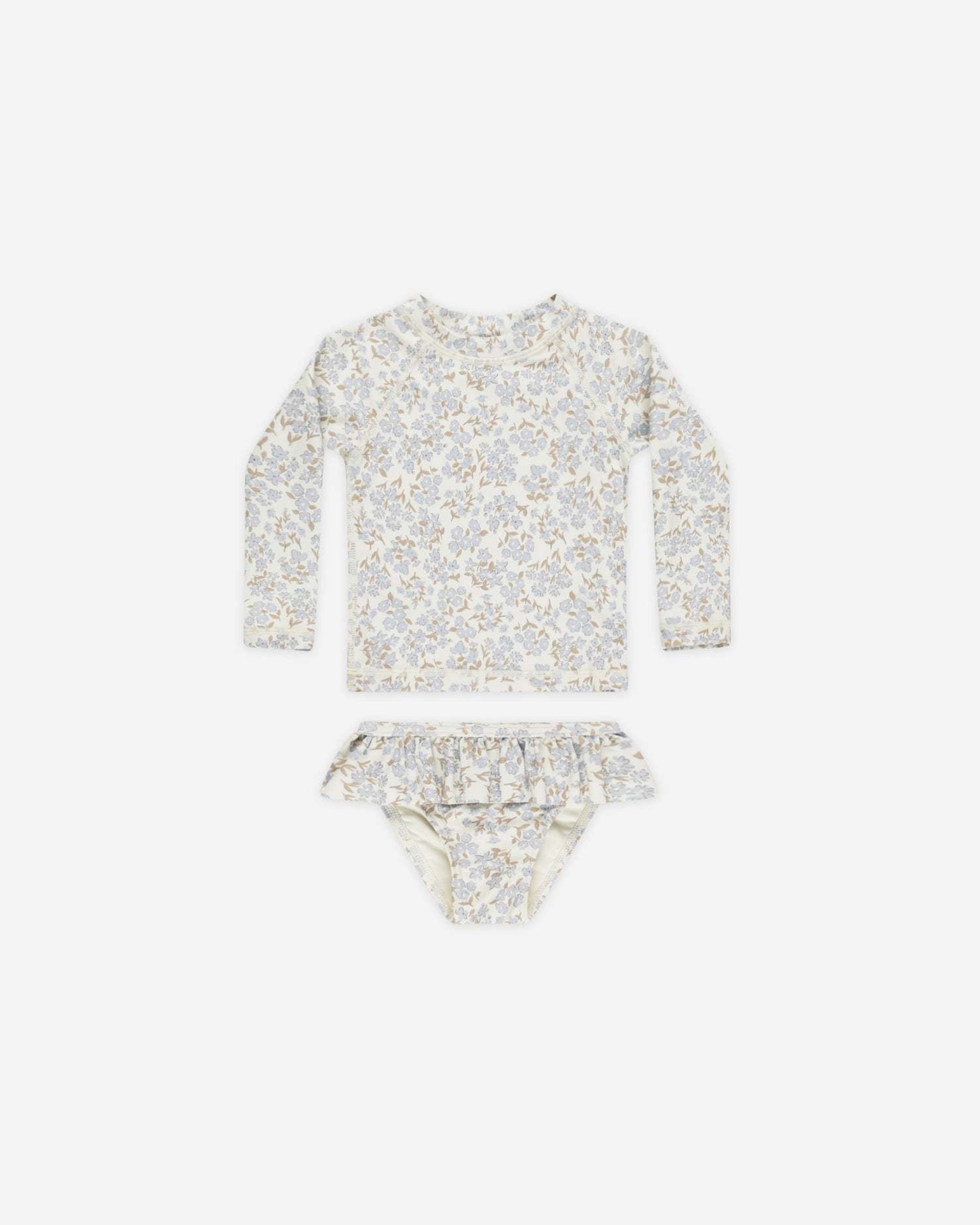 • Ensemble rashguard deux pièces qui protégera votre tout-petit du soleil avec style. Il comprend un haut rashguard à manches longues et un bas de bikini à jupe à volants assorti.