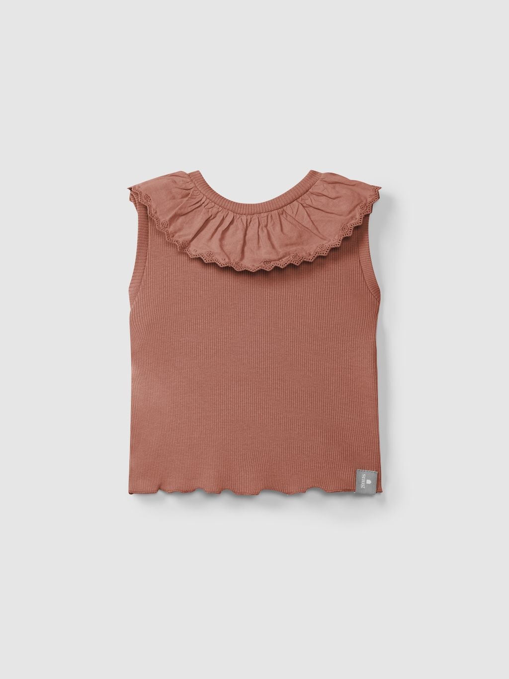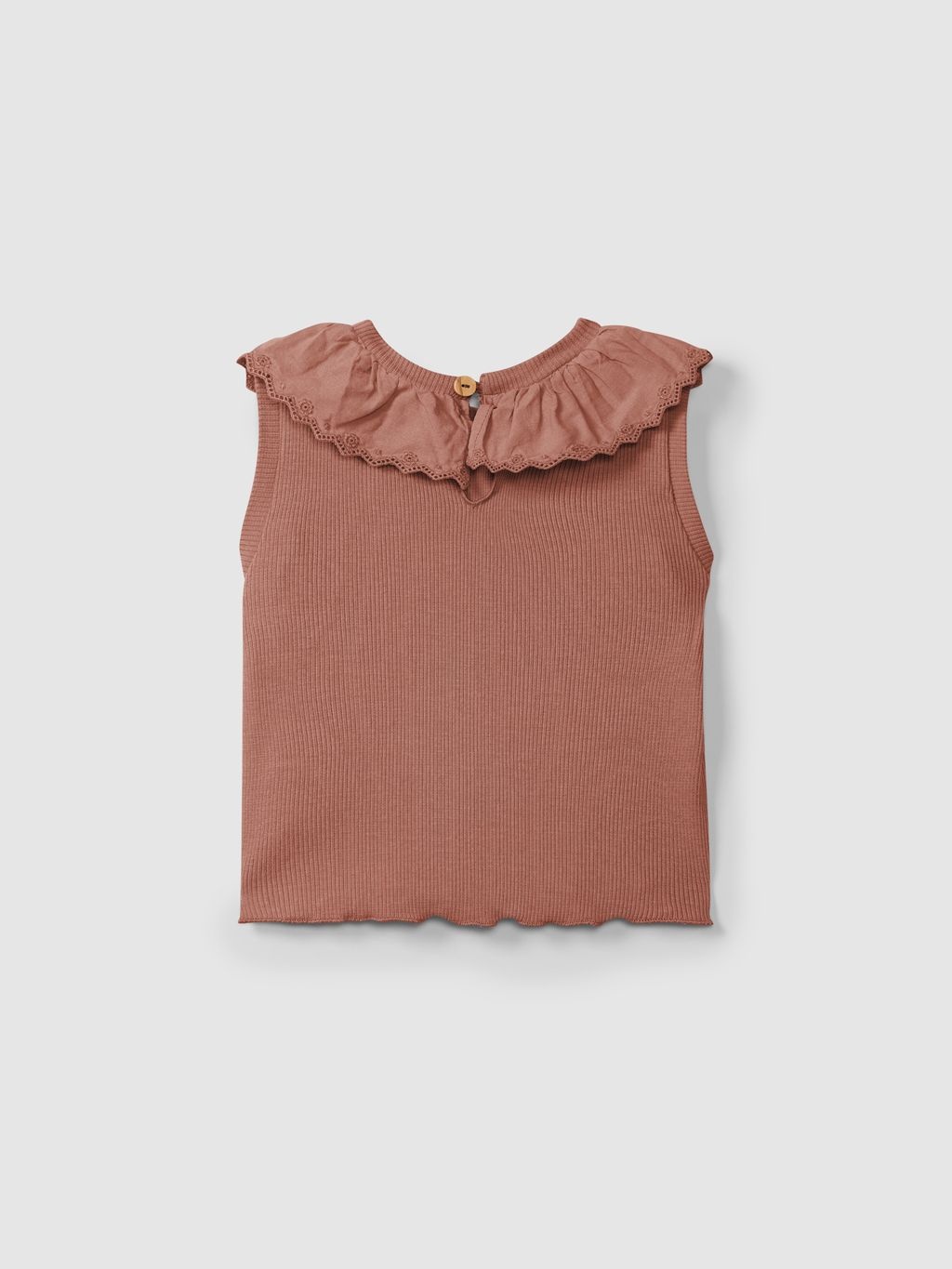 • Haut sans manche avec joli col de couleur terre cuite.