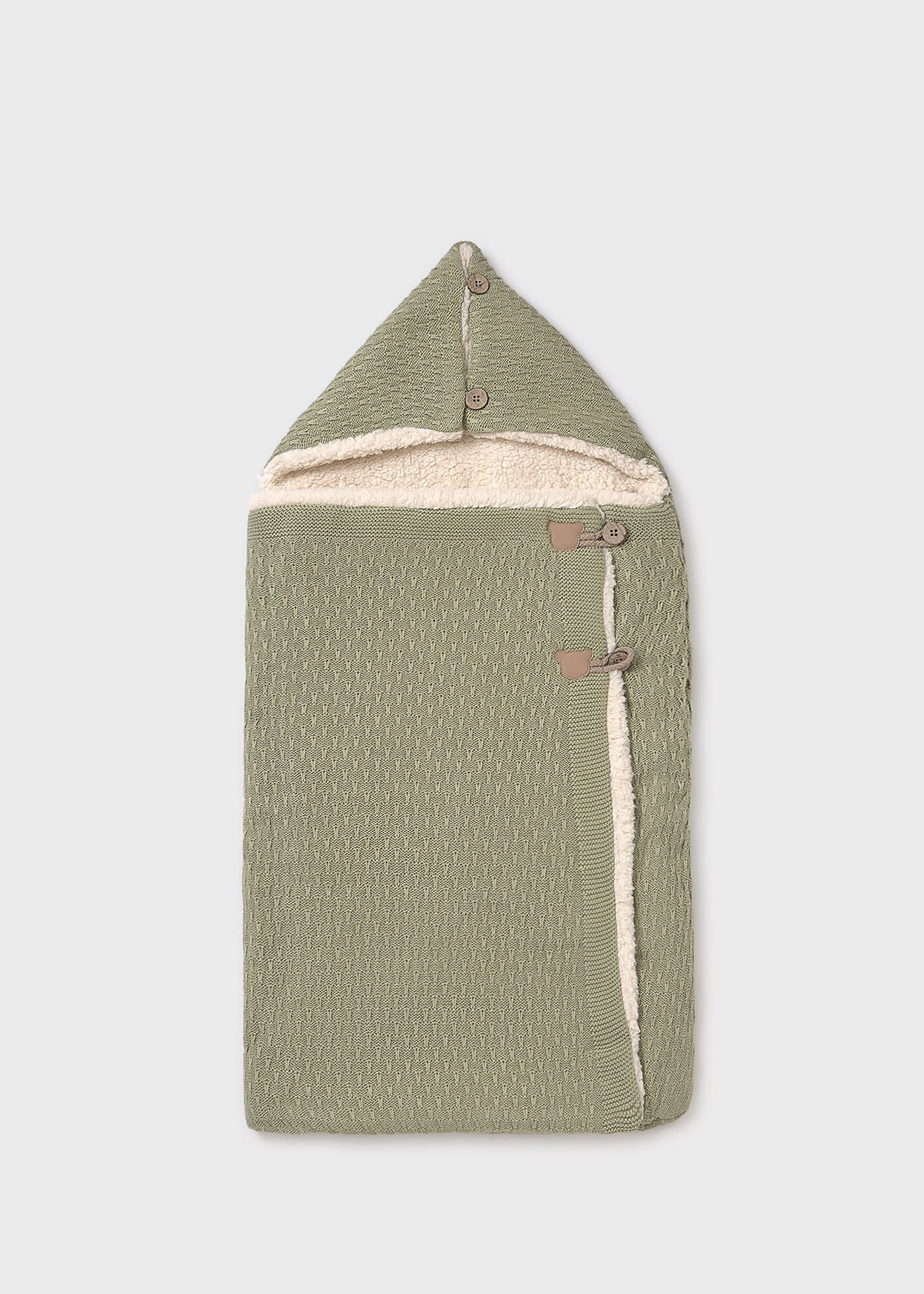 • Housse verte en tricot avec 2 boutonnière doublée d'une fourrure douce et chaude.
