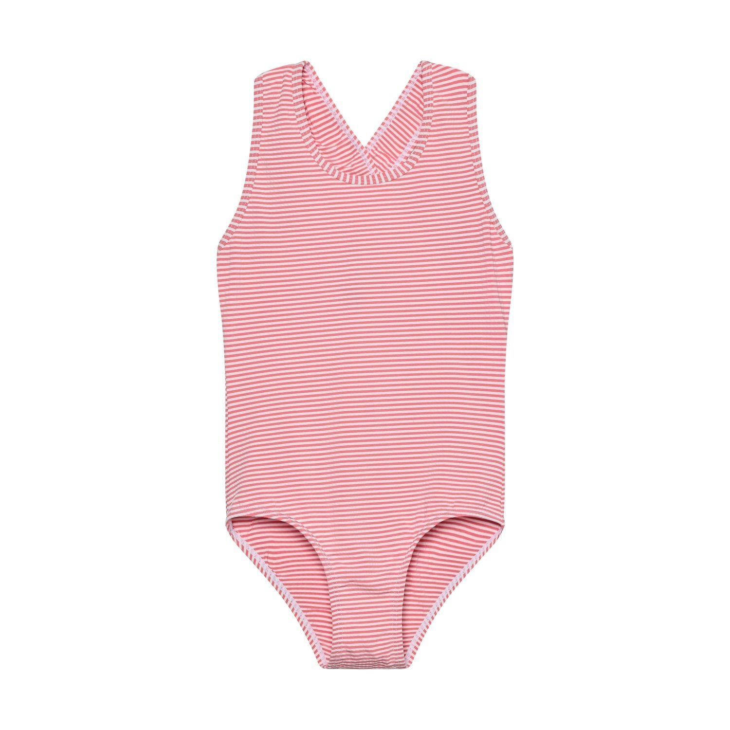 • Maillot de bain rayé rose et blanc.