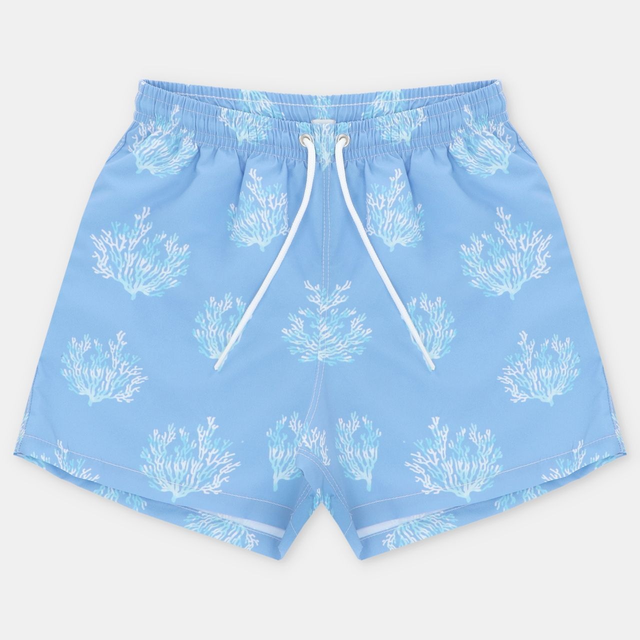 • Shorts maillot bleu imprimé avec culotte en mèche.