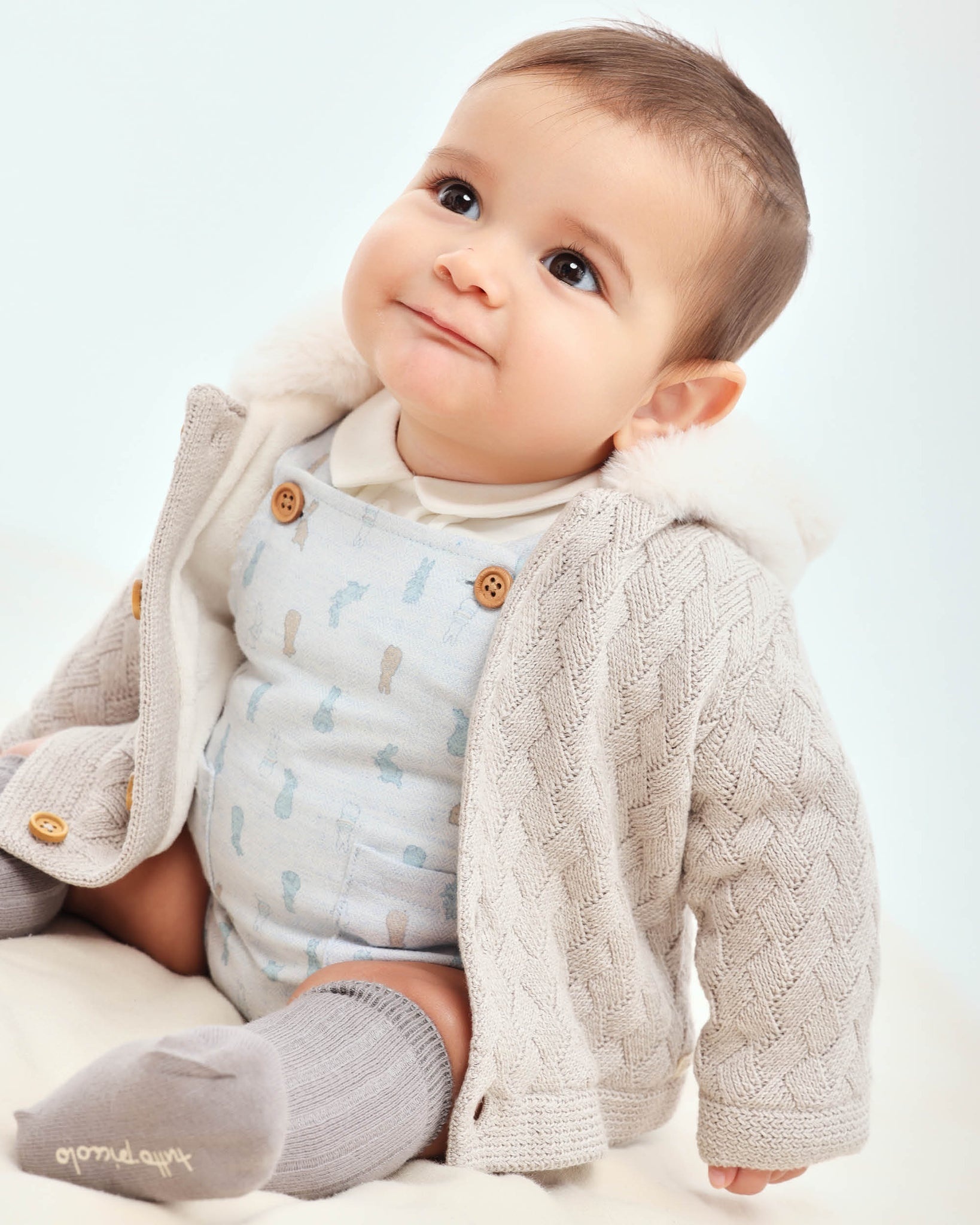 • Ce manteau en tricot avec capuche est entièrement doublé de fausse fourrure pour plus de chaleur.