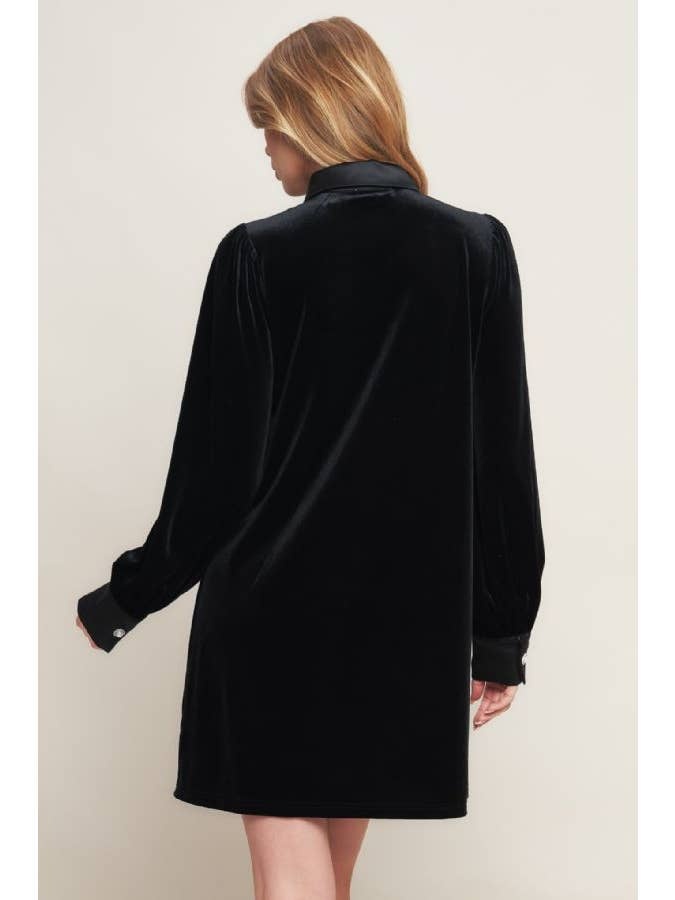 • Mini-robe en velours manches longues avec boutons bijoux.