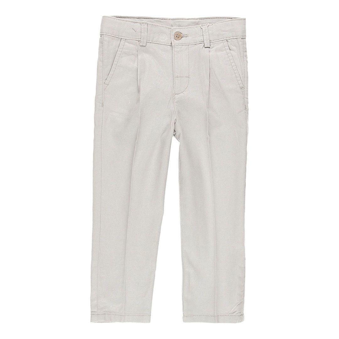 • Pantalon blanc à taille ajustable avec boutonnière et fermeture éclair.