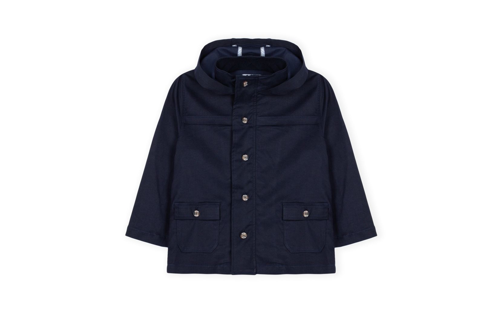 • Parka de couleur marine avec capuche et fermeture éclair.