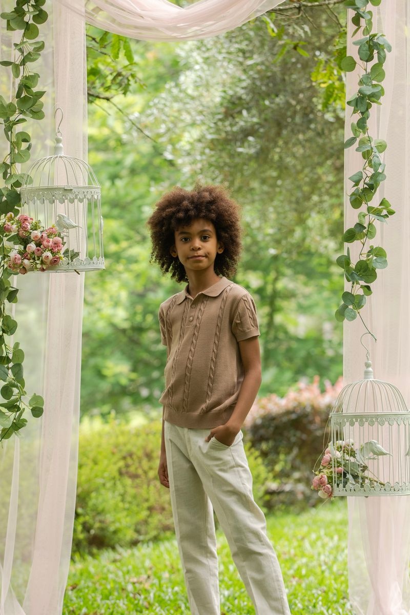 • Polo manches courtes en tricot de couleur brun.