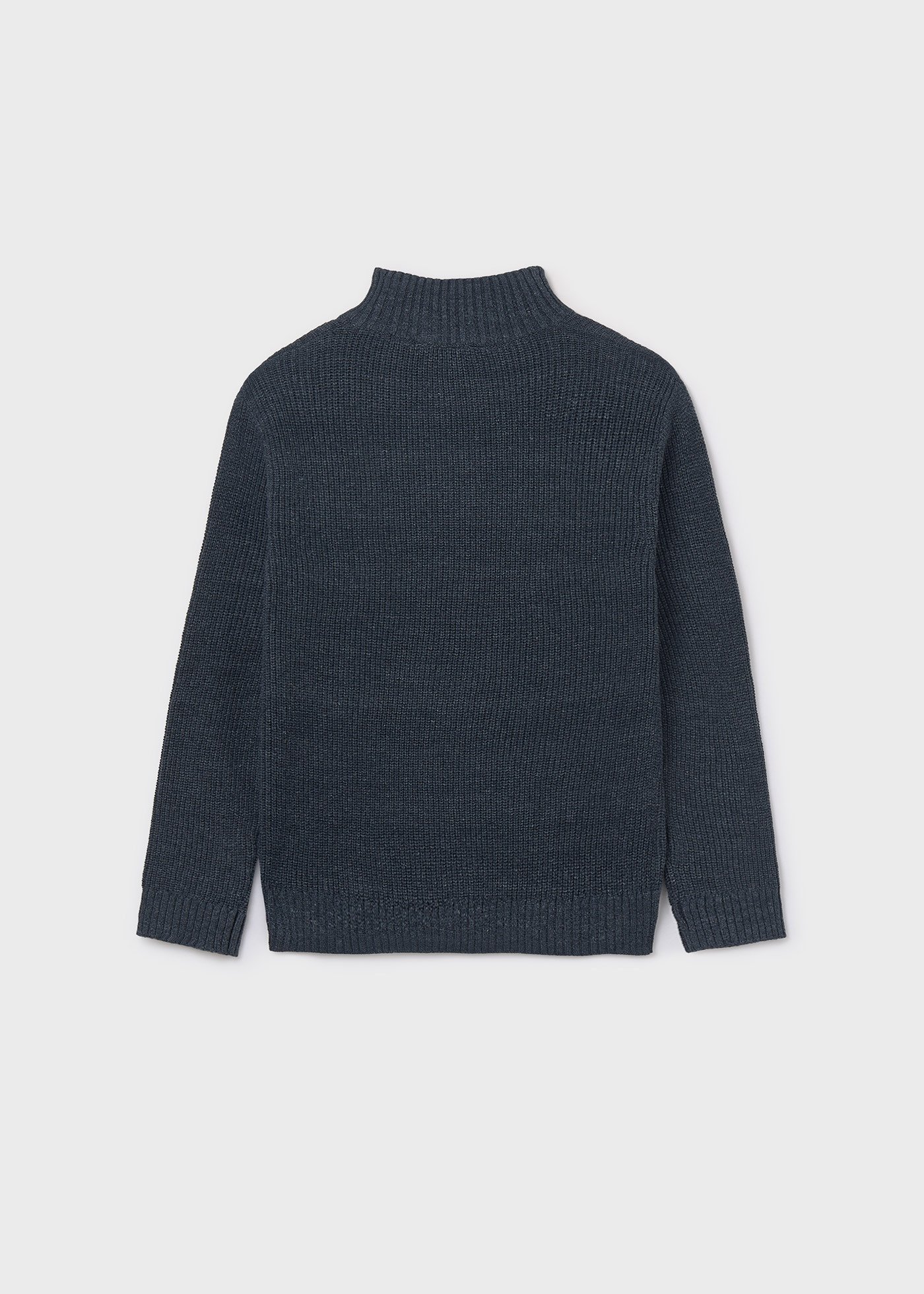 • Pull en tricot de couleur marine avec fermeture éclair.