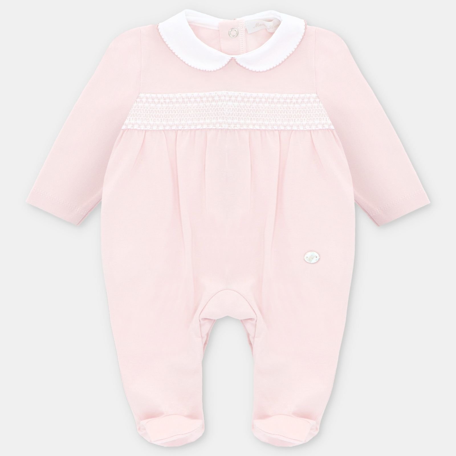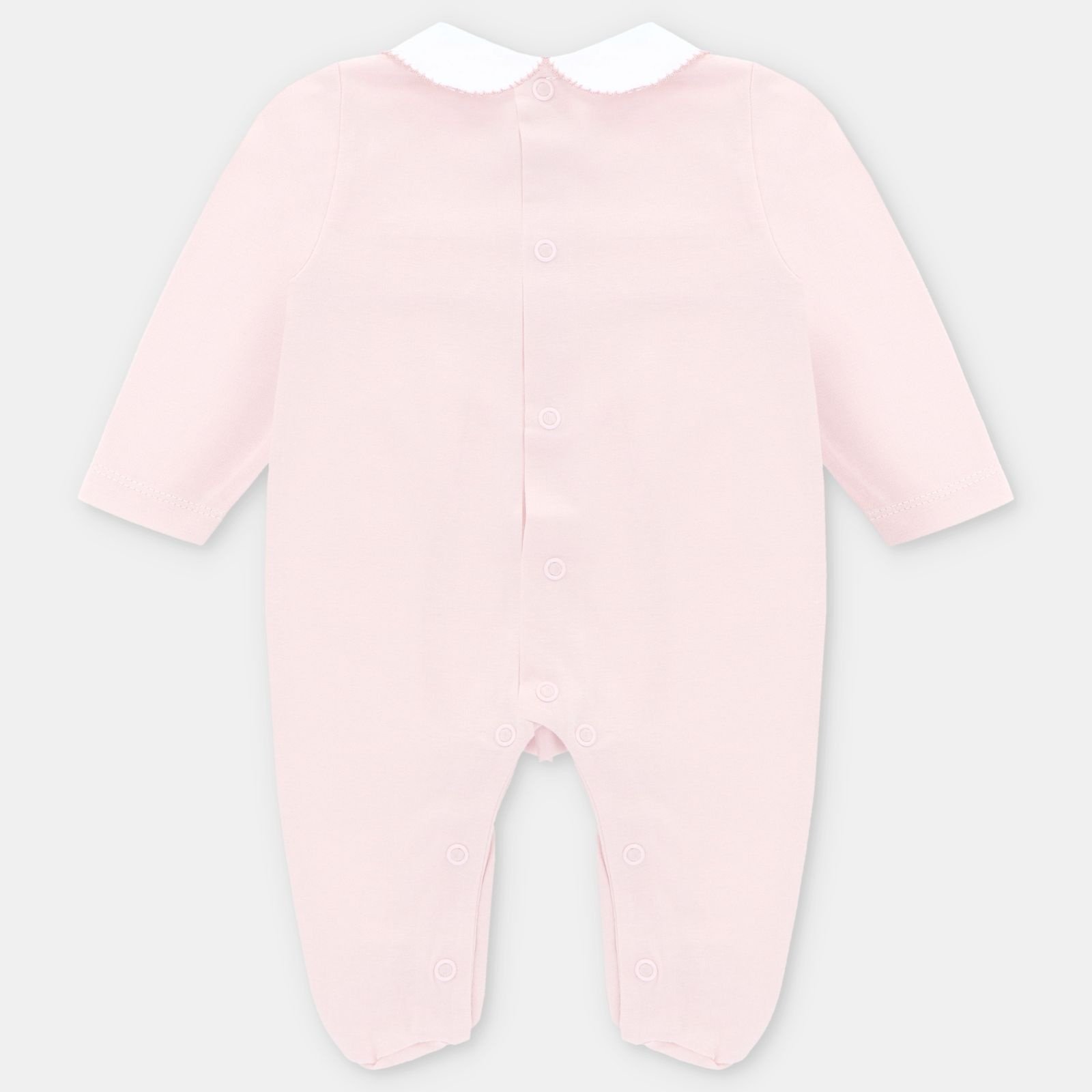 • Pyjama de couleur rose avec boutons pressions au dos et à l'entrejambe.