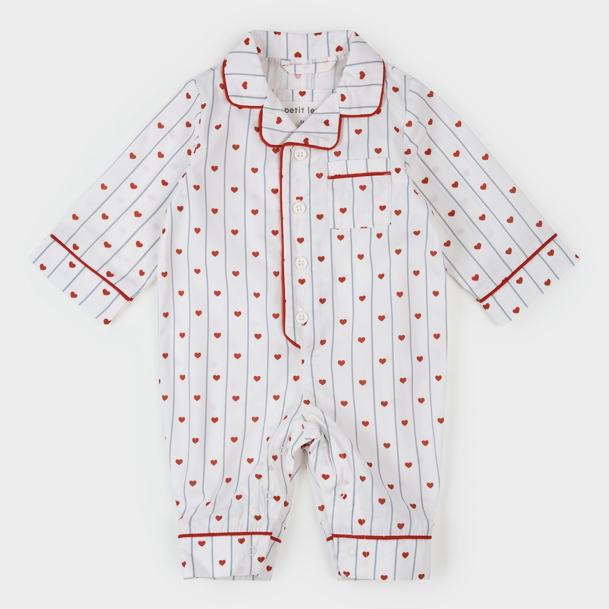Pyjama thermique imprimé de couleur rose avec fermeture éclair à double sens qui facilite les changements de couches nocturnes.