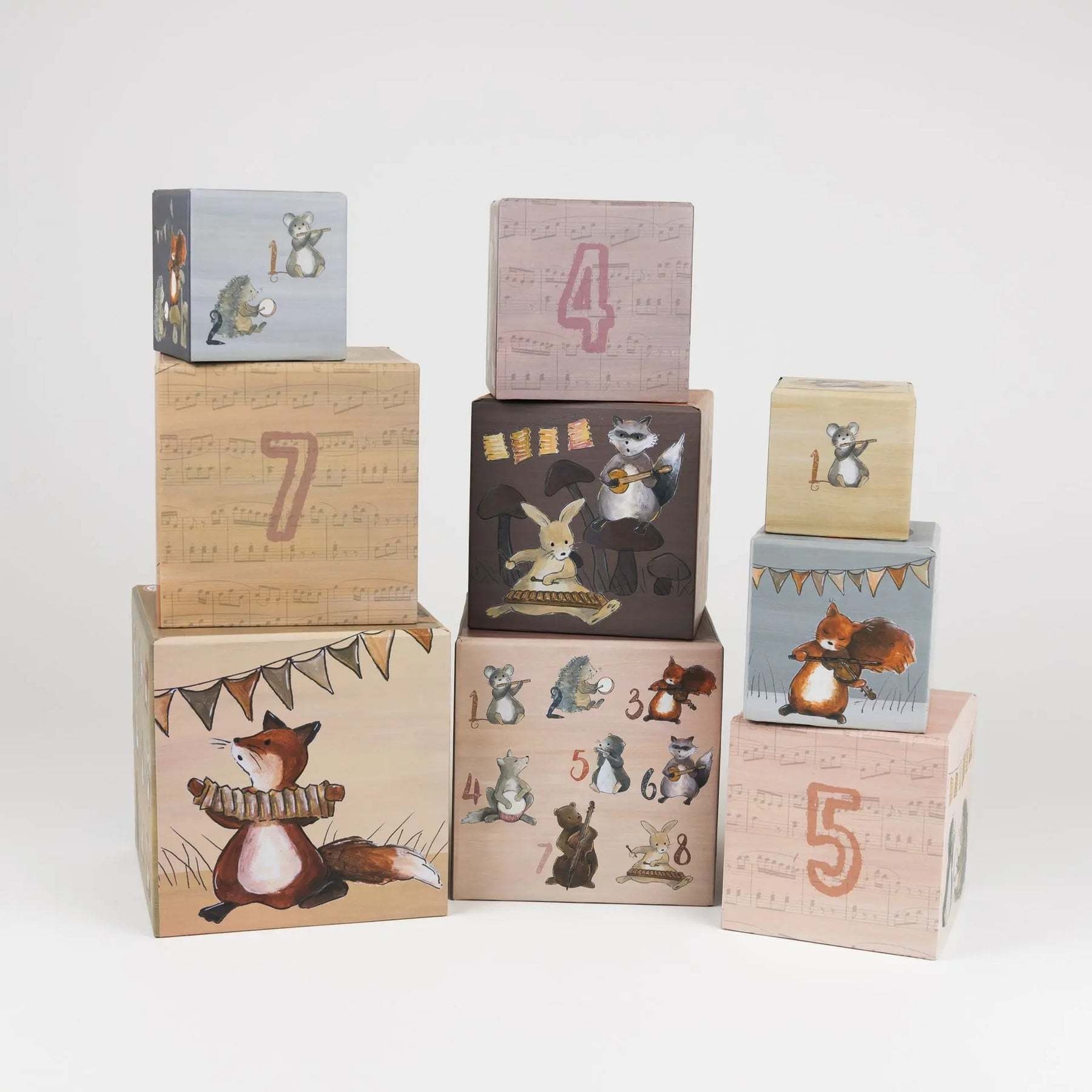 Dix boîtes aux couleurs douces à empiler et disposer pour créer des scènes chaleureuses ou rangez-les les unes dans les autres.