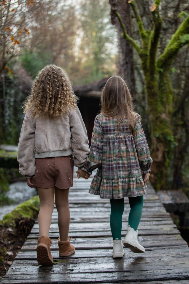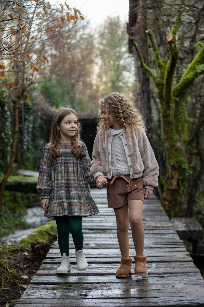 • Robe manches longues à carreaux avec fermeture éclair au dos.