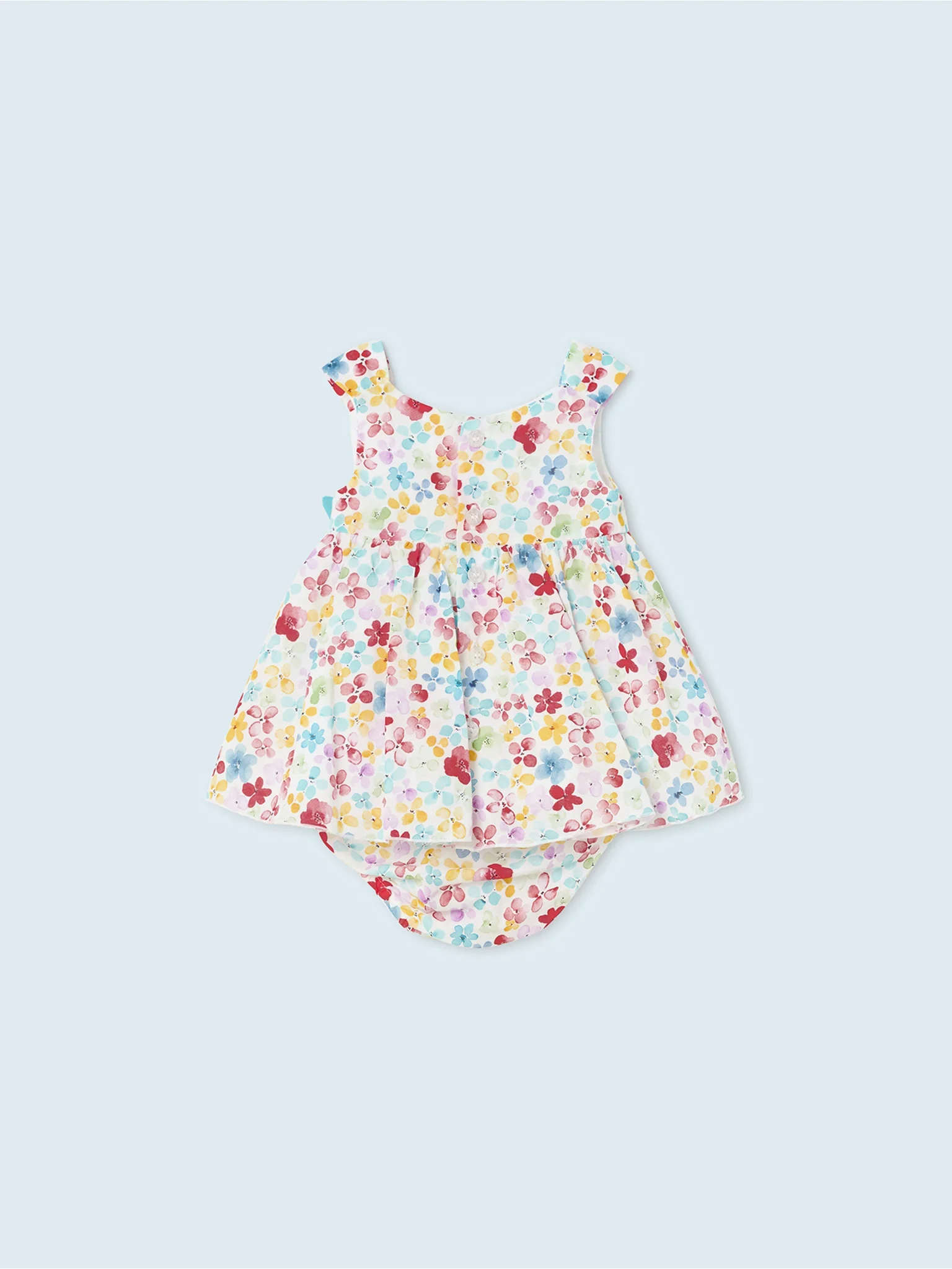• Robe fleurie boutonnée au dos avec panty agencé.