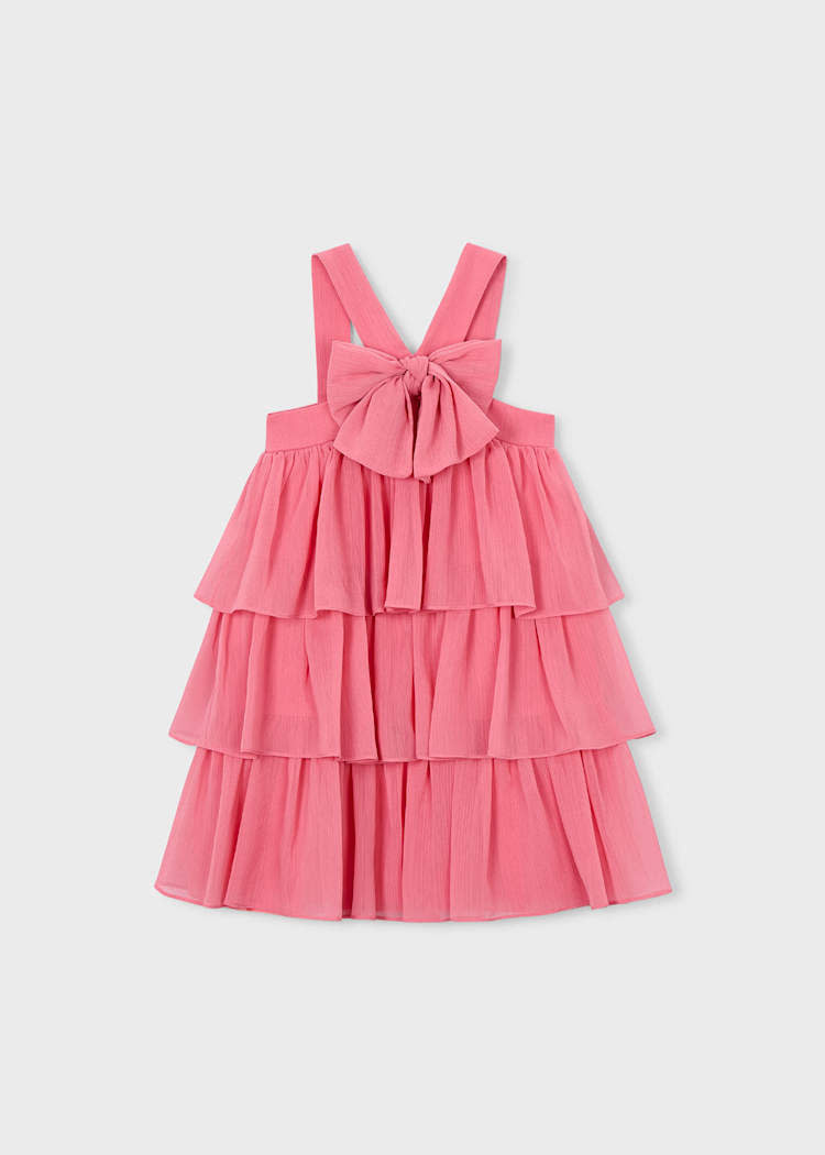 • Robe à volants de couleur rose avec fermeture éclair au dos.