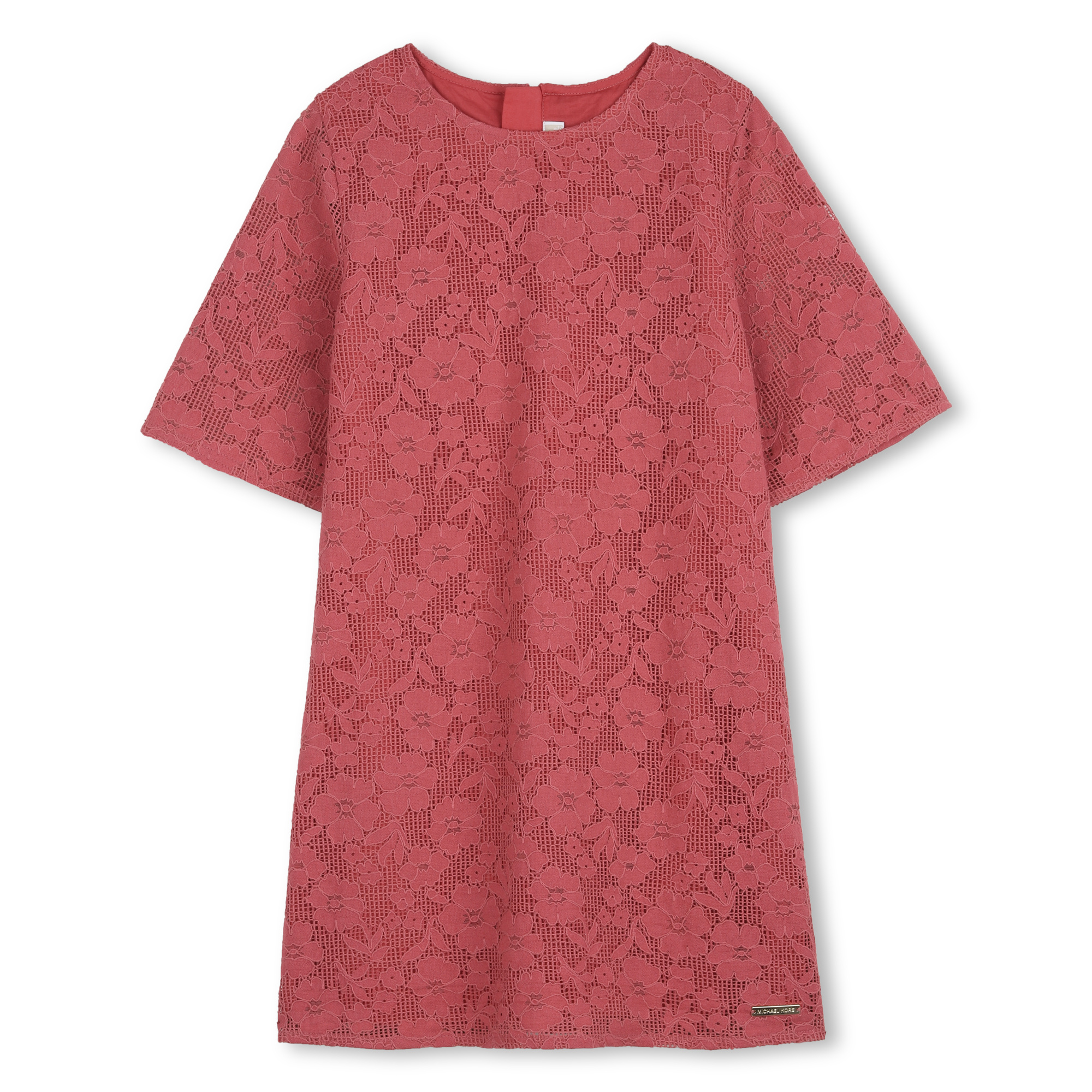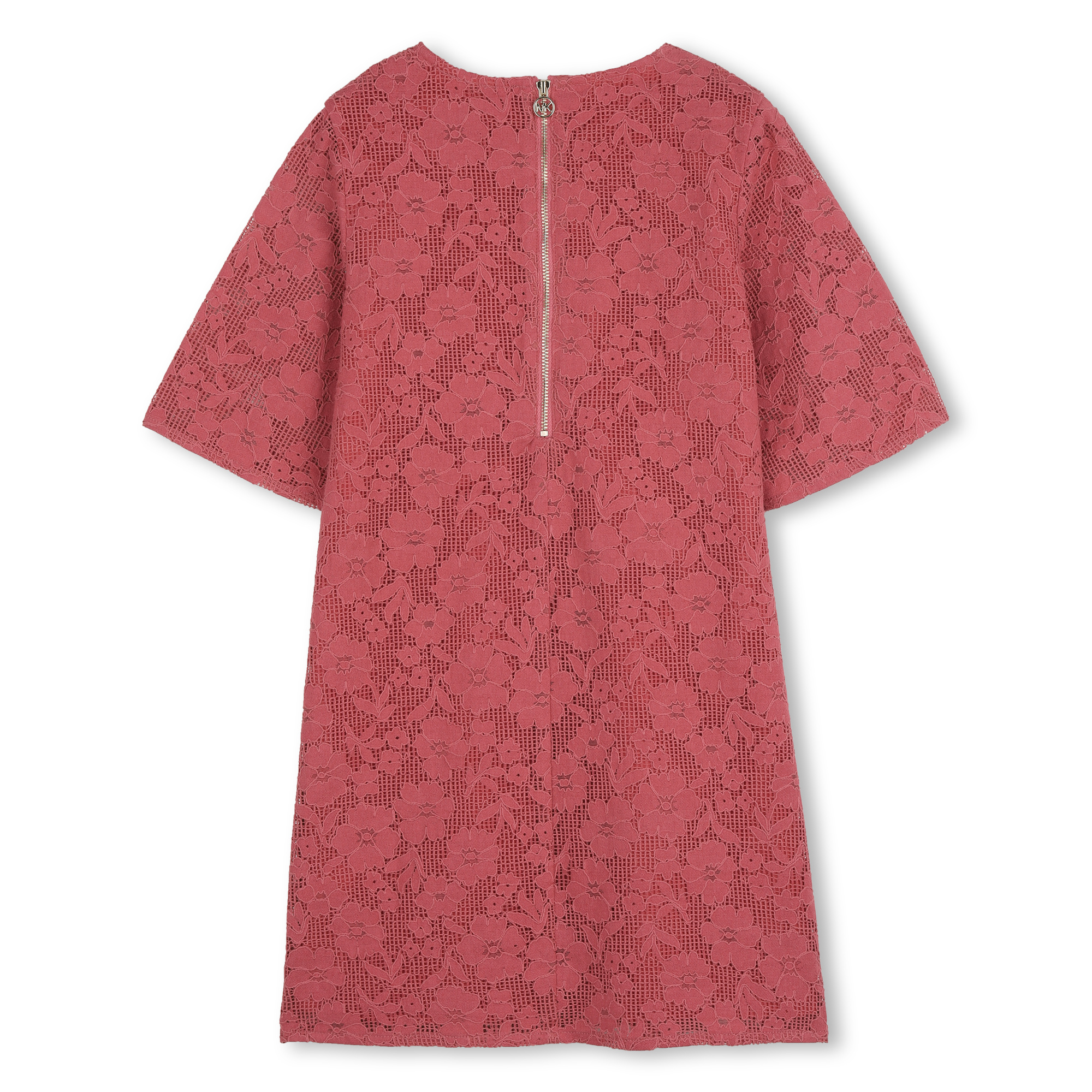 • Robe rose à motif fleuris et fermeture éclaire au dos.