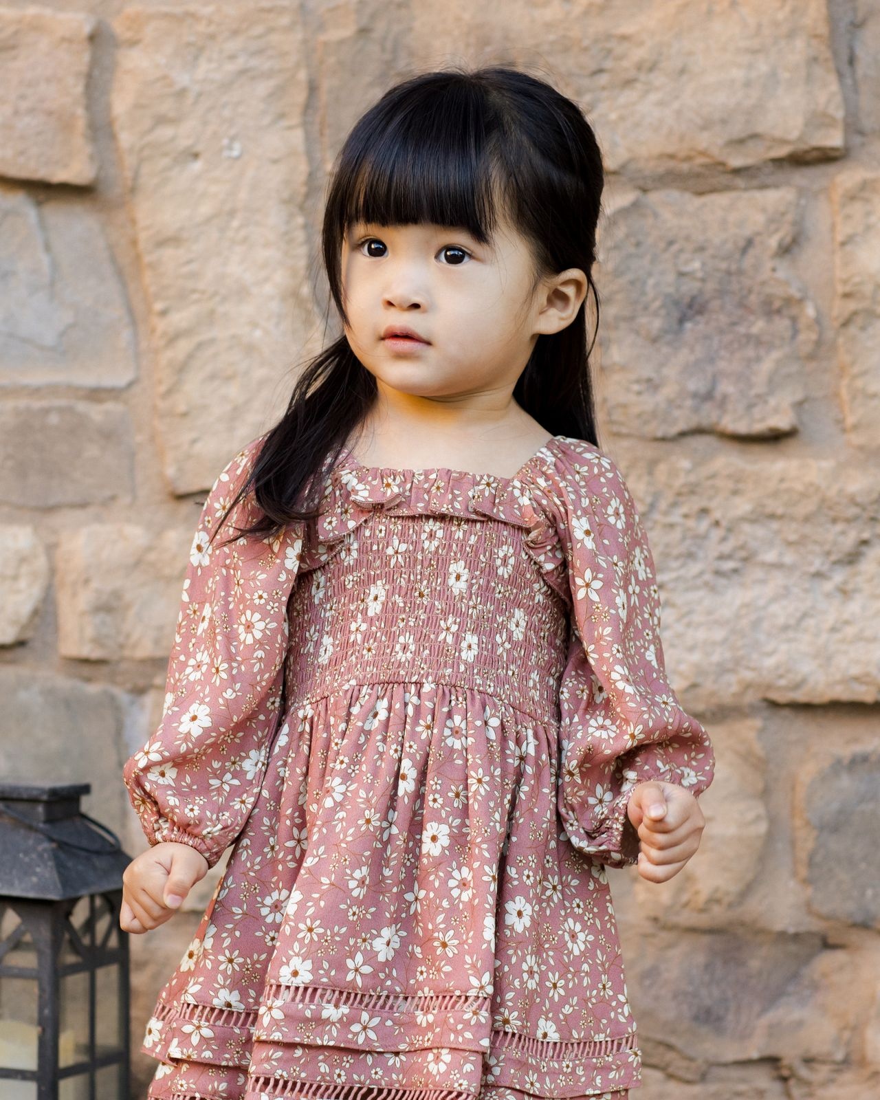 • Robe fleurie avec corsage smocké orné de délicats volants ainsi que des manches ballon élastiques.