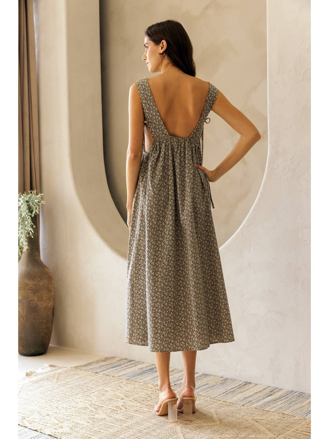 • Robe midi sans manche à motif floral conçu avec un large décolleté en U et un dos ouvert bas qui ajoute une touche de féminité moderne.