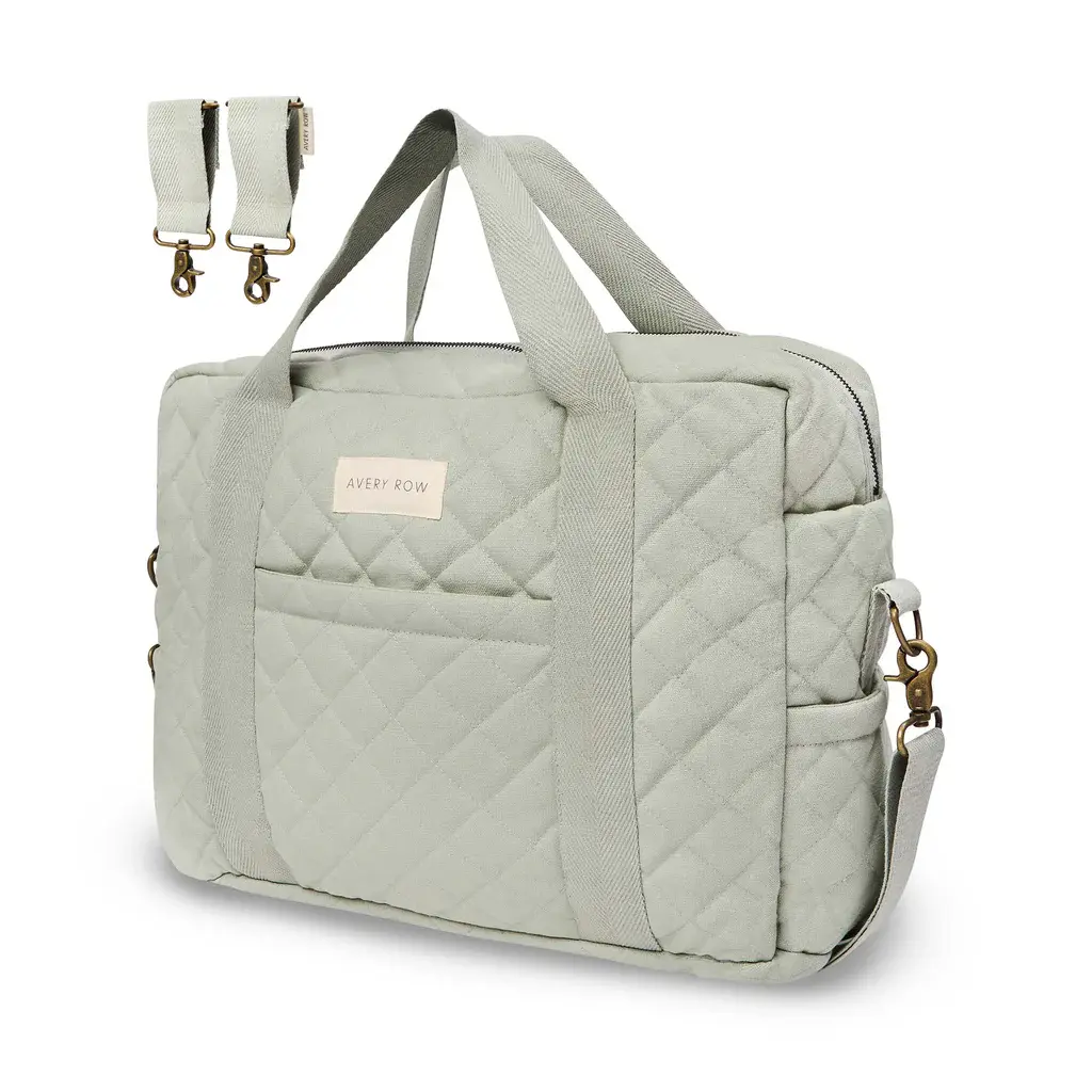 • Sac à langer en coton bio idéal pour ranger tous ces essentiels au même endroit. La large bandoulière en toile ajoute un confort et un soutien supplémentaires, et les poches internes et externes vous permettent de tout garder organisé.