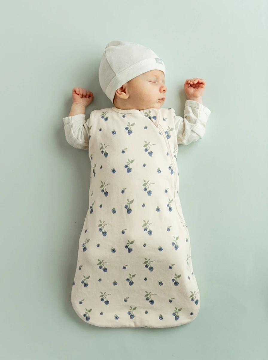 • Sac à couchage imprimé de couleur beige avec fermeture éclair à double sens.