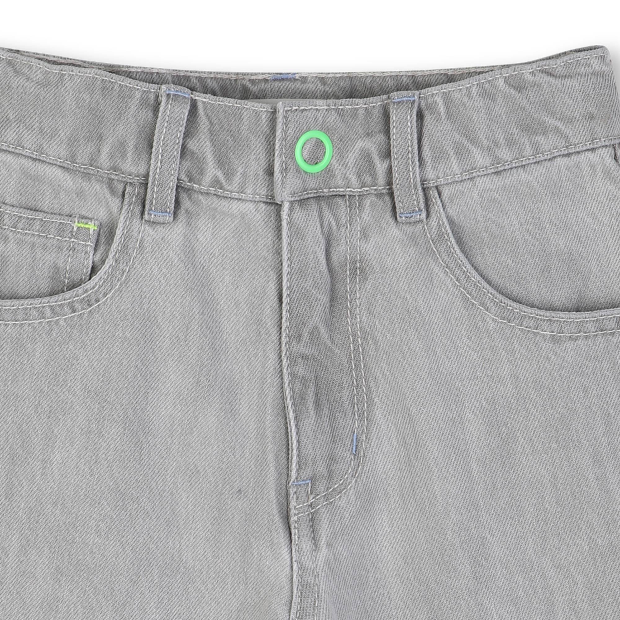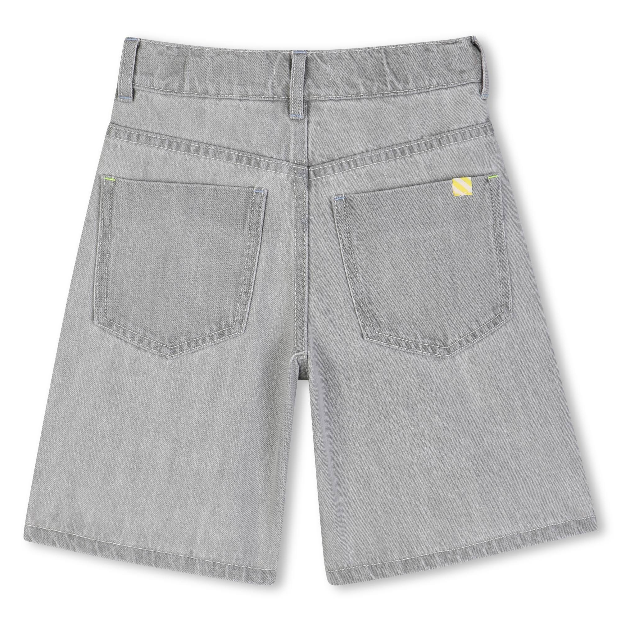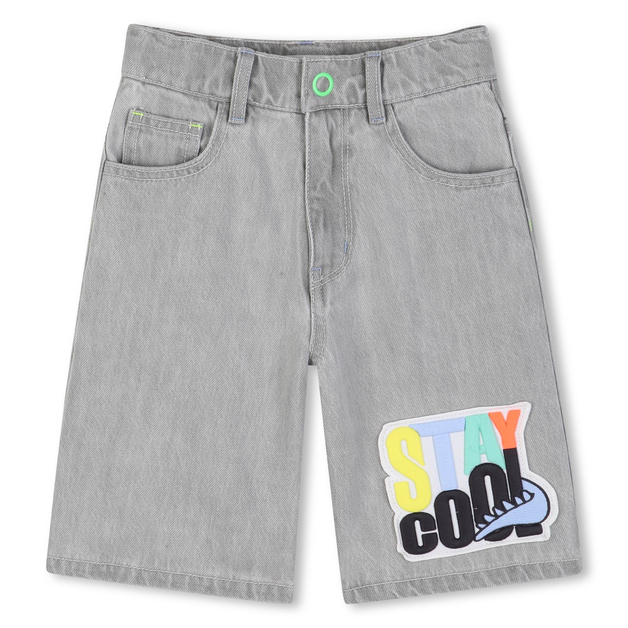 • Short en jeans gris avec patch décorative dans le bas. Bouton pression et fermeture éclair.