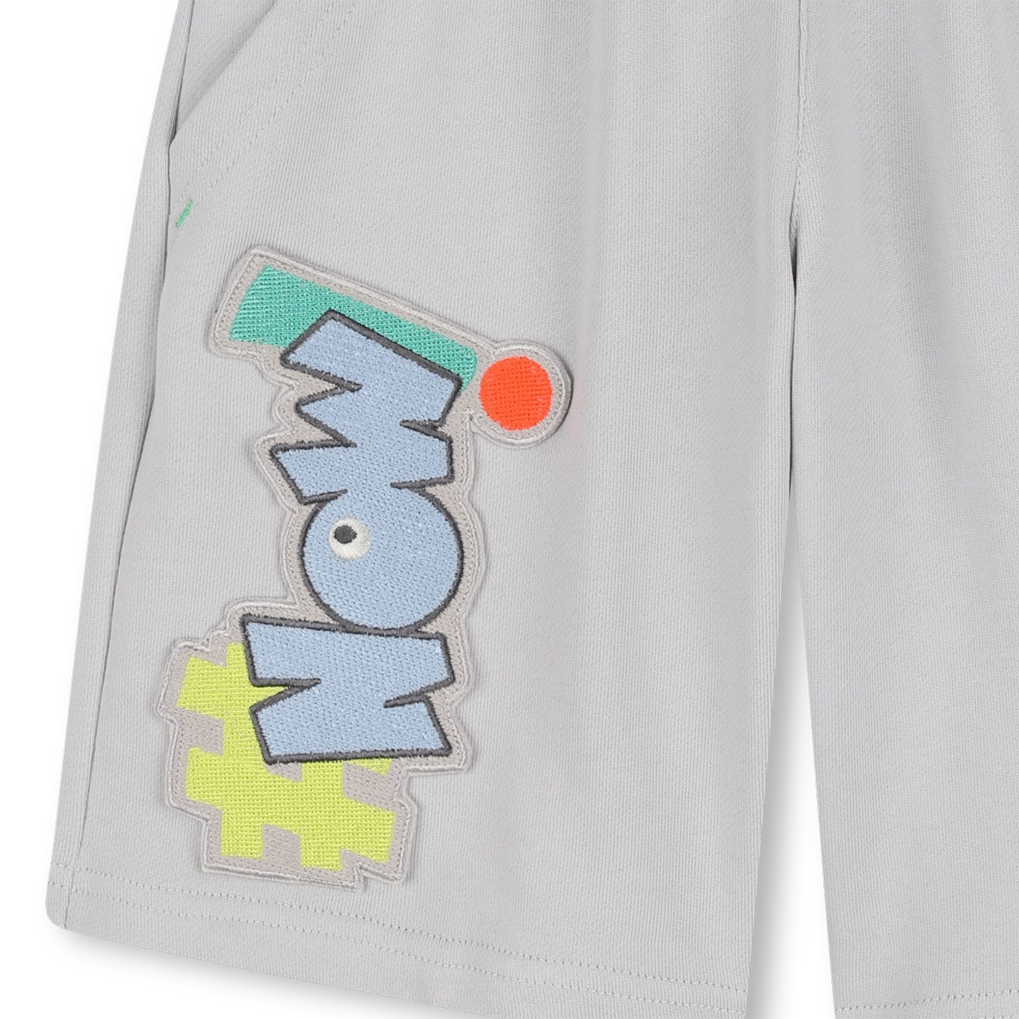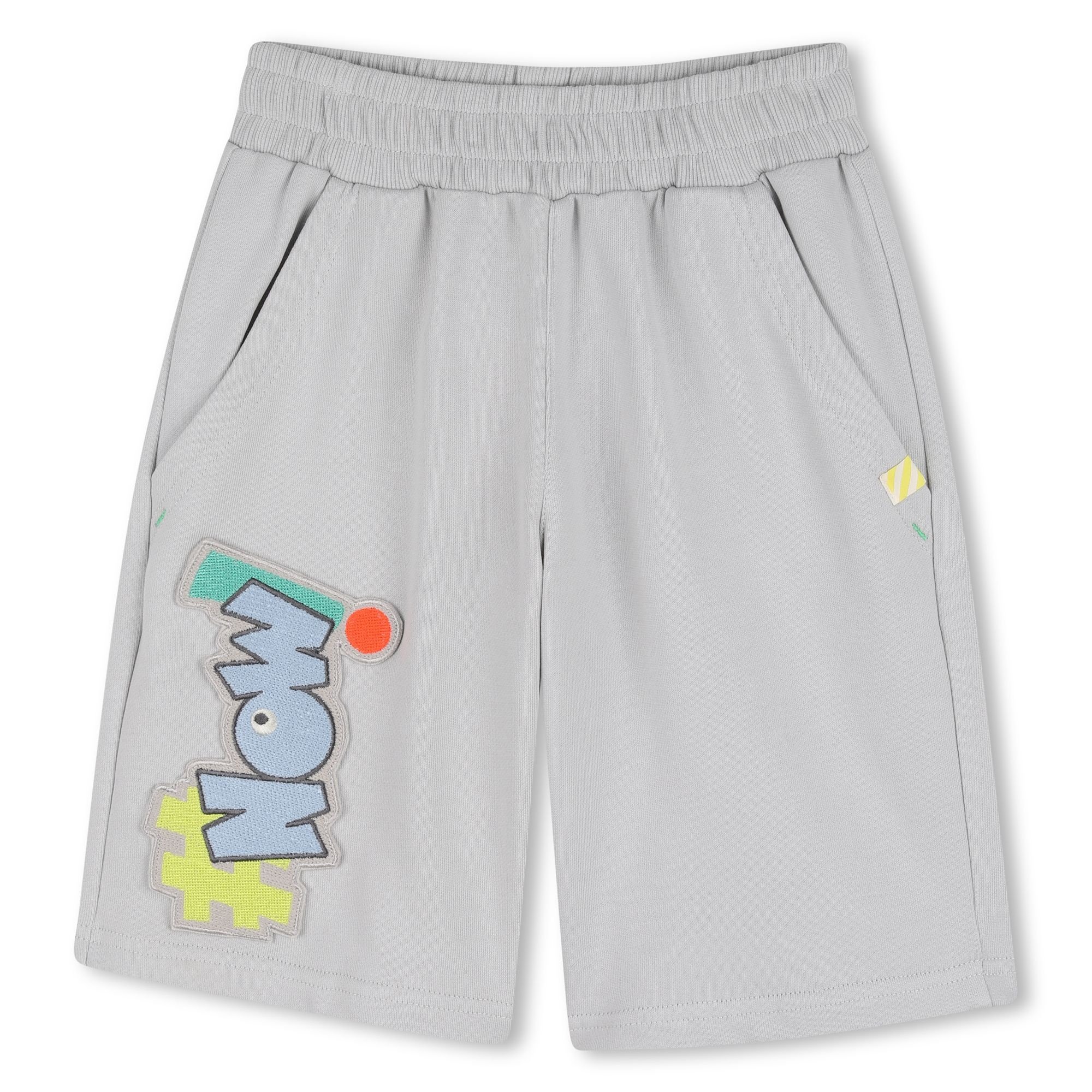• Short épais gris avec patch décorative dans le bas et taille élastique.