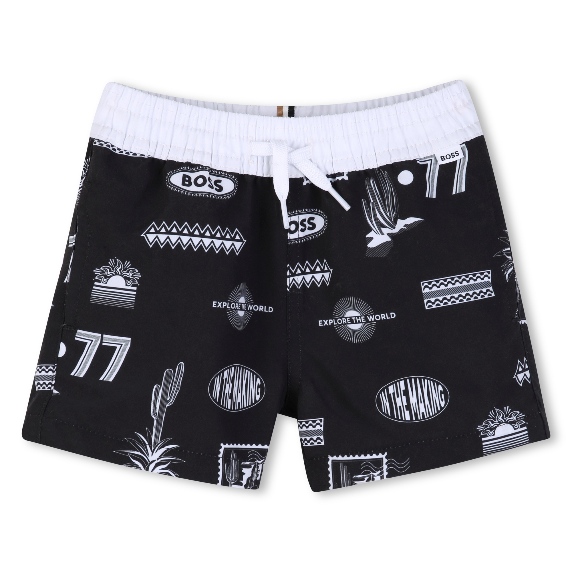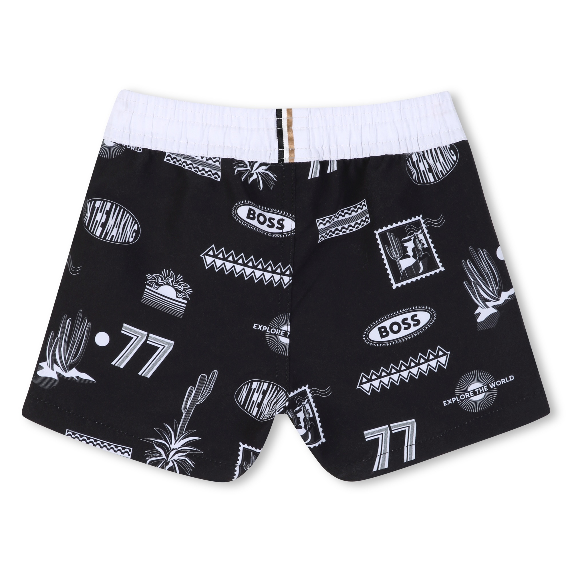 • Short maillot noir et blanc avec imprimé de style "patch". Taille élastique et cordon d'attache.