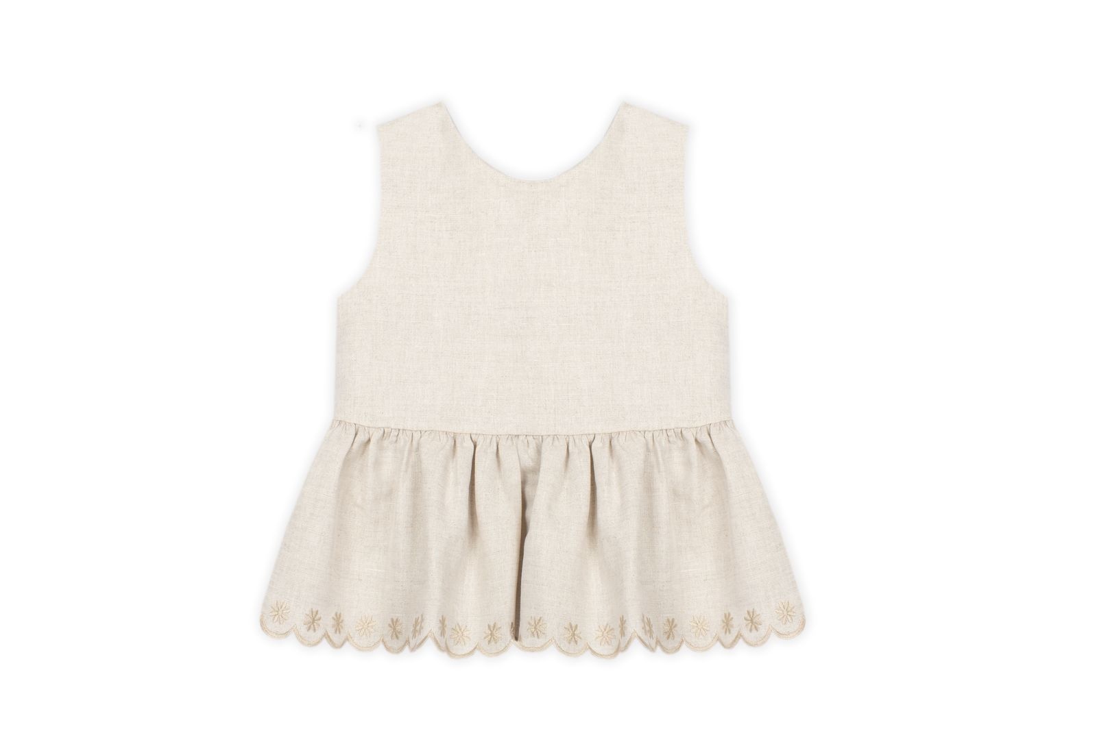 • Blouse sans manche couleur lin avec ouverture au dos.