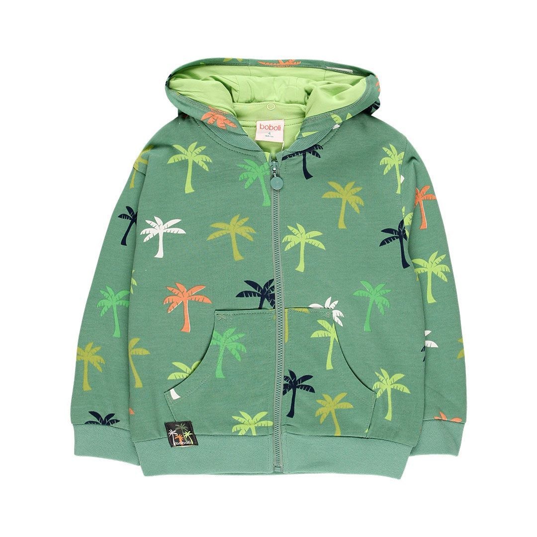 • Veste imprimée de couleur verte avec capuche et fermeture éclair.