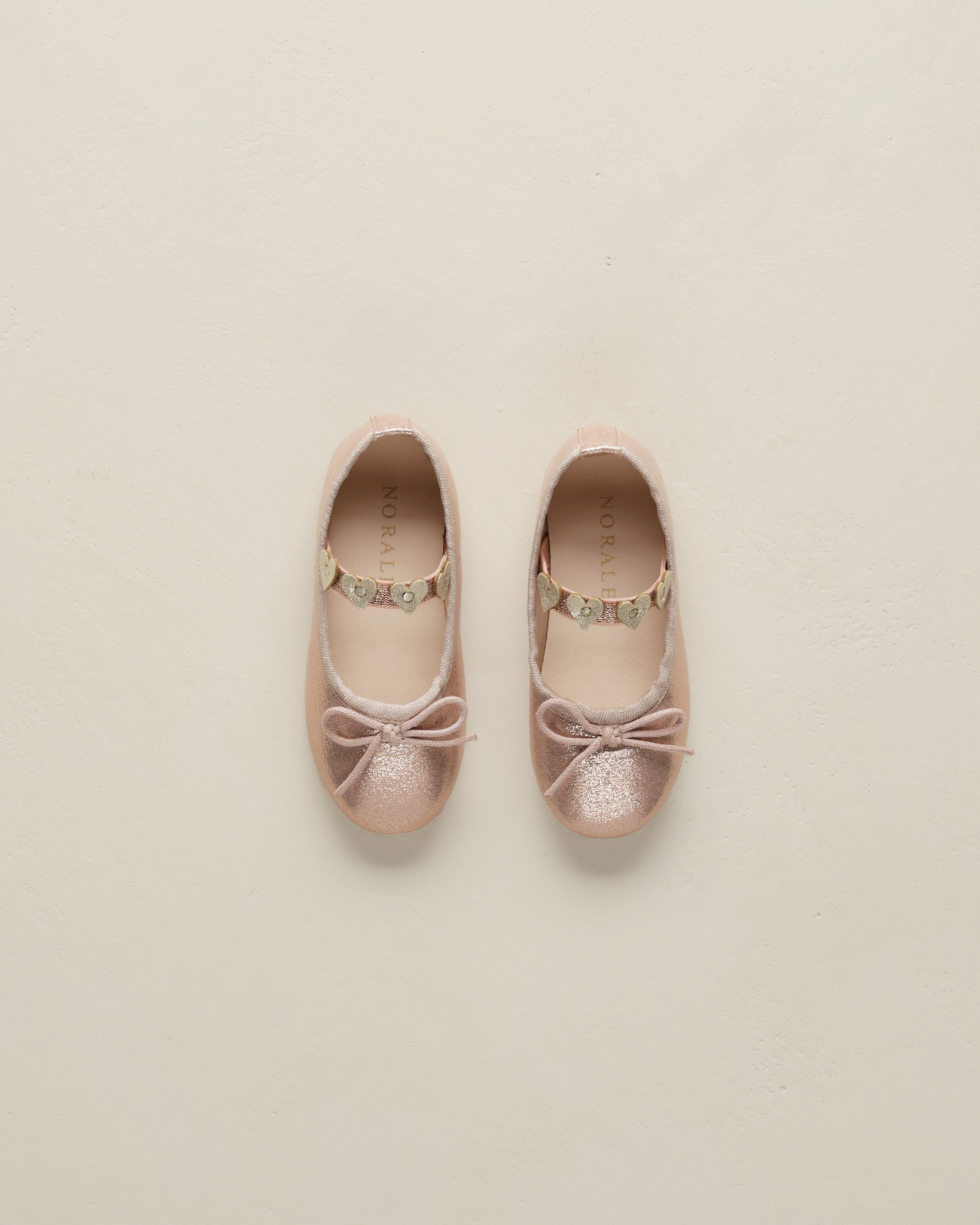 • These dazzling shoes feature elastic straps with pretty heart-shaped details and a charming bow on the toe.