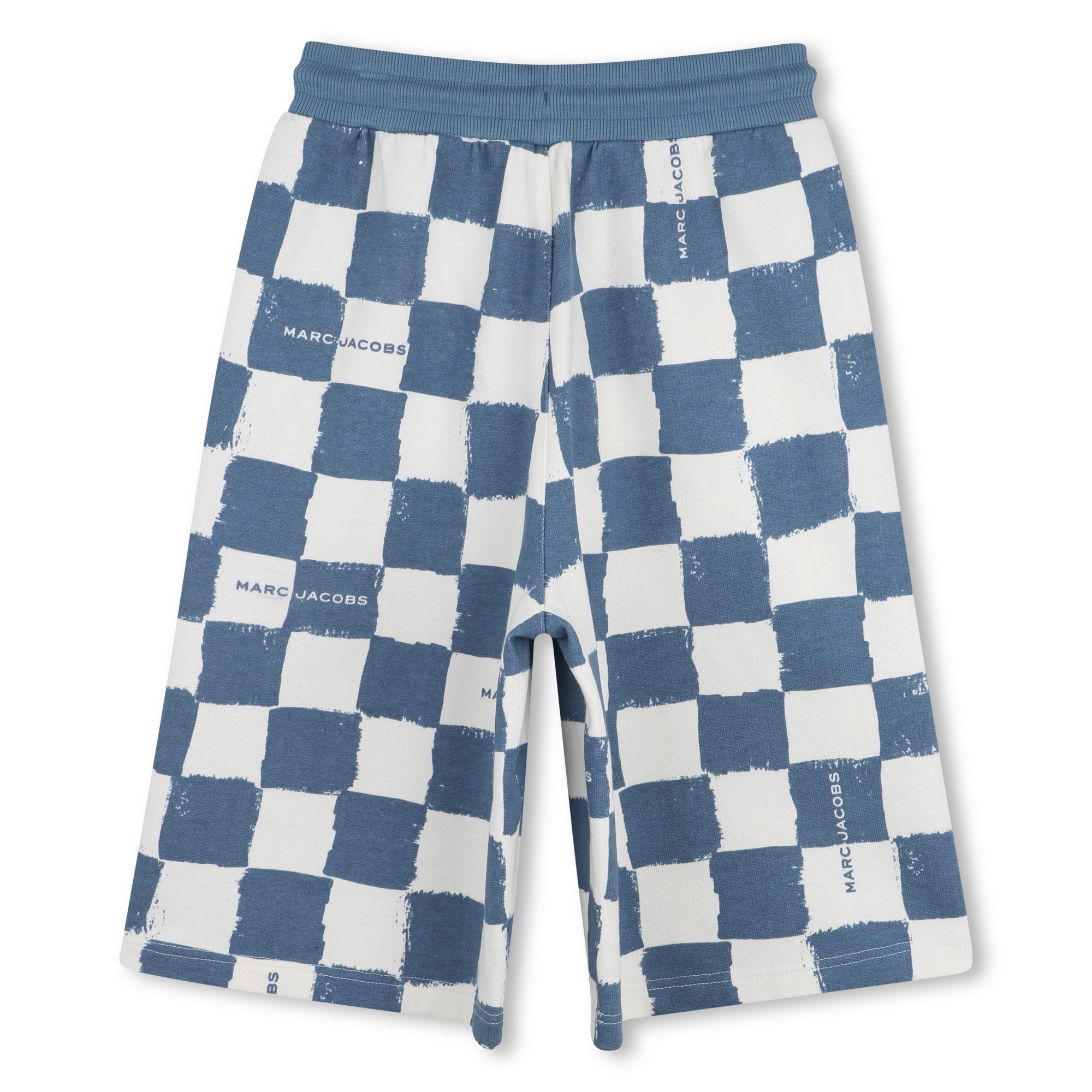 • Cream and blue checkered Bermuda shorts with elasticated waistband.