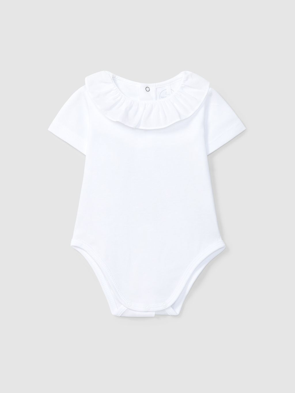 • Short sleeves body with pretty collar, and snap buttons at the back and crotch.